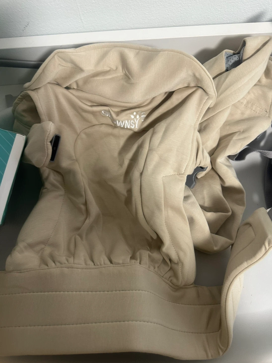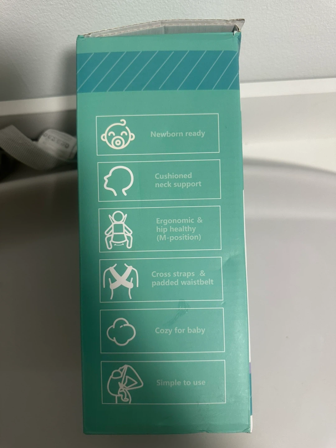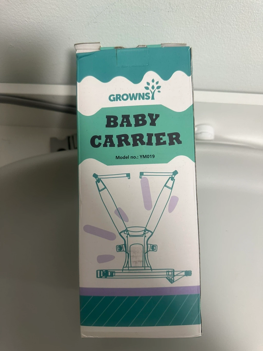 Selling a Grownsy baby carrier in new condition! It's designed for newborns and features cushioned neck support. The carrier is ergonomic and promotes hip health (M-position) and also includes cross straps and a padded waist belt. It's cozy for baby and simple to use. Model no.: YM019