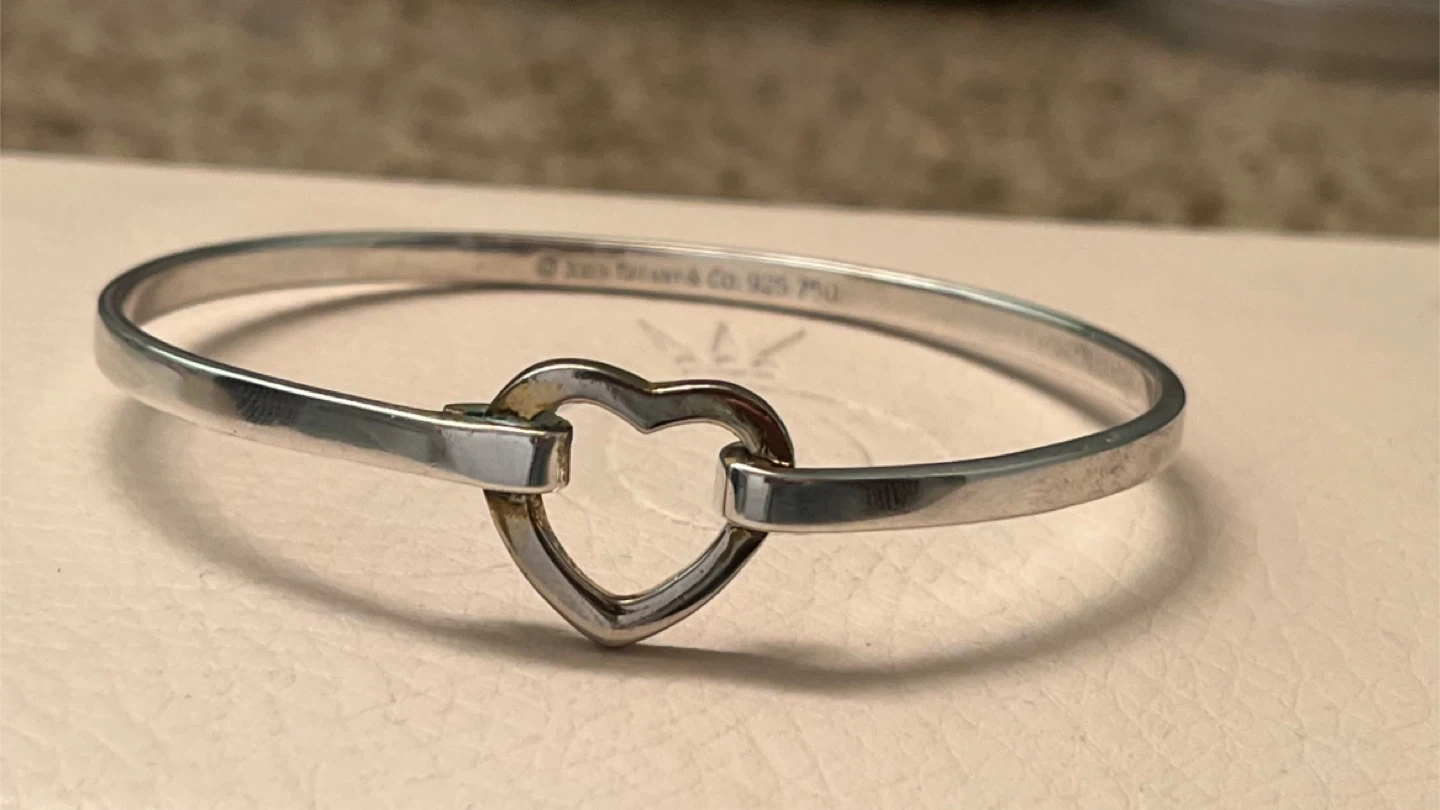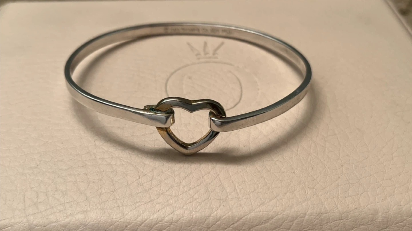 Selling a Tiffany & Co. heart bangle bracelet. It's a lovely piece that would make a great addition to any jewellery collection. The bracelet is made of 925 silver.
