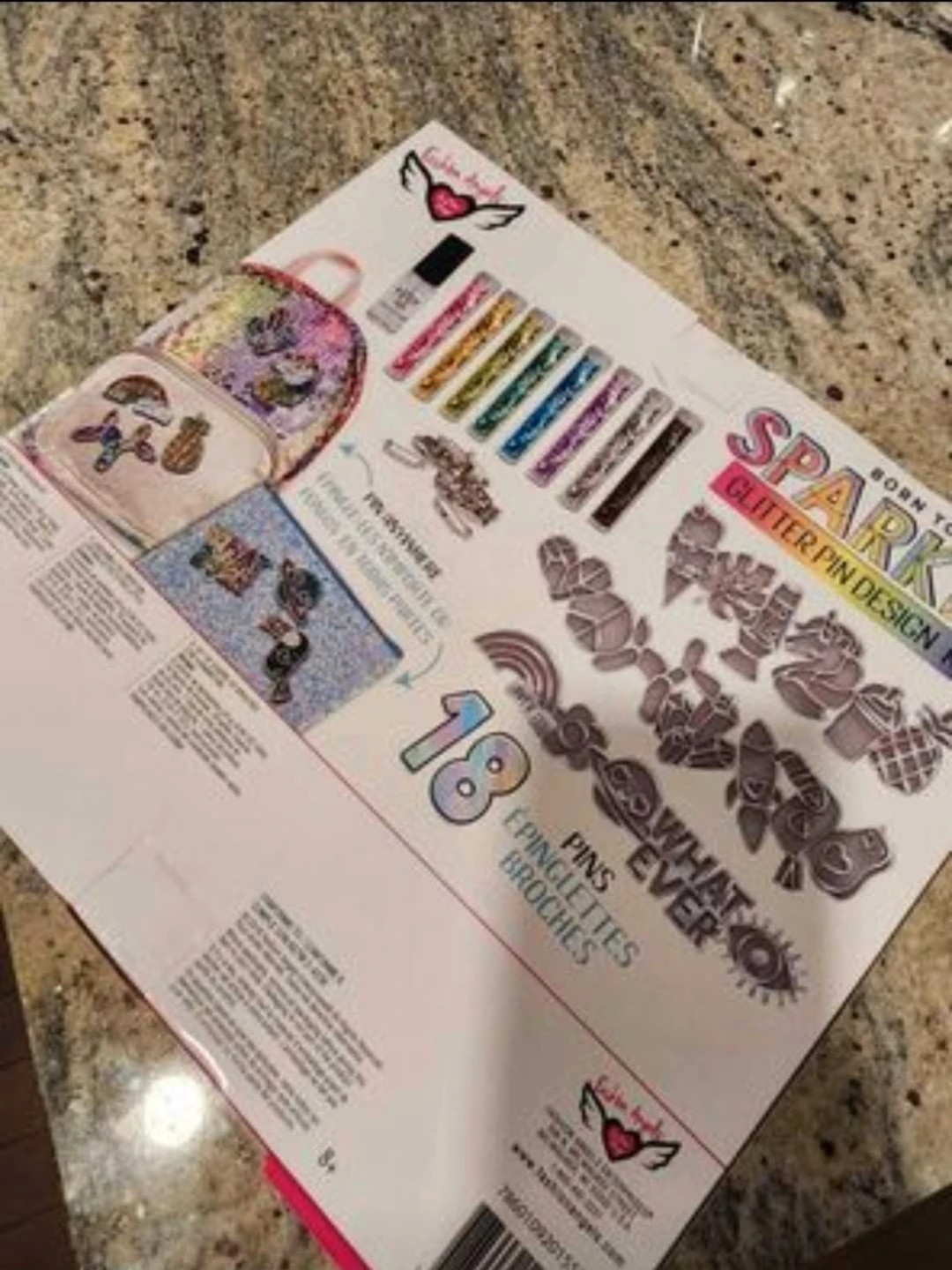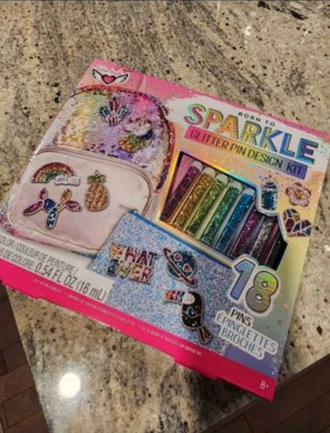 Get creative with this Born to Sparkle Glitter Pin Design Kit! It includes everything you need to make 18 unique pins. Perfect for adding some sparkle to backpacks, pencil cases, or jackets. Recommended for ages 8+