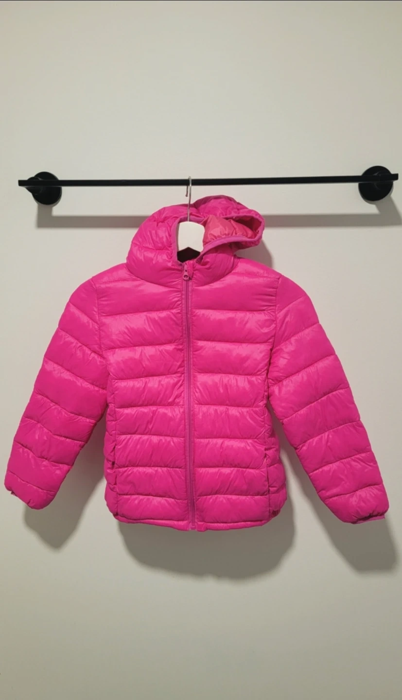 Here's a cute pink puffer jacket! It's in great condition and ready for a new home. Perfect for keeping warm on chilly days
