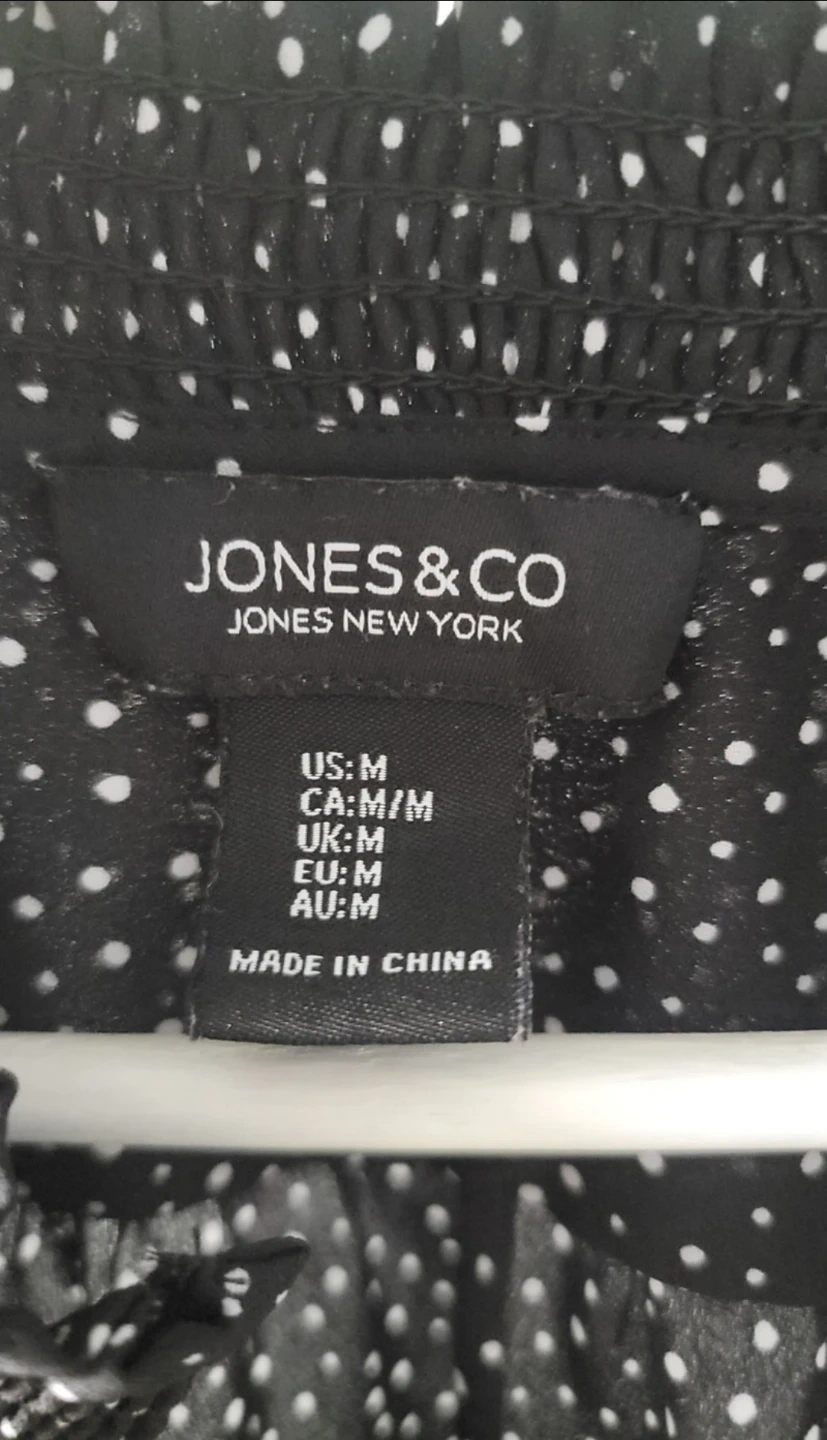 Jones & Co blouse with a cute polka dot pattern! It's a size M and in great condition. Perfect for adding a touch of style to your wardrobe!
