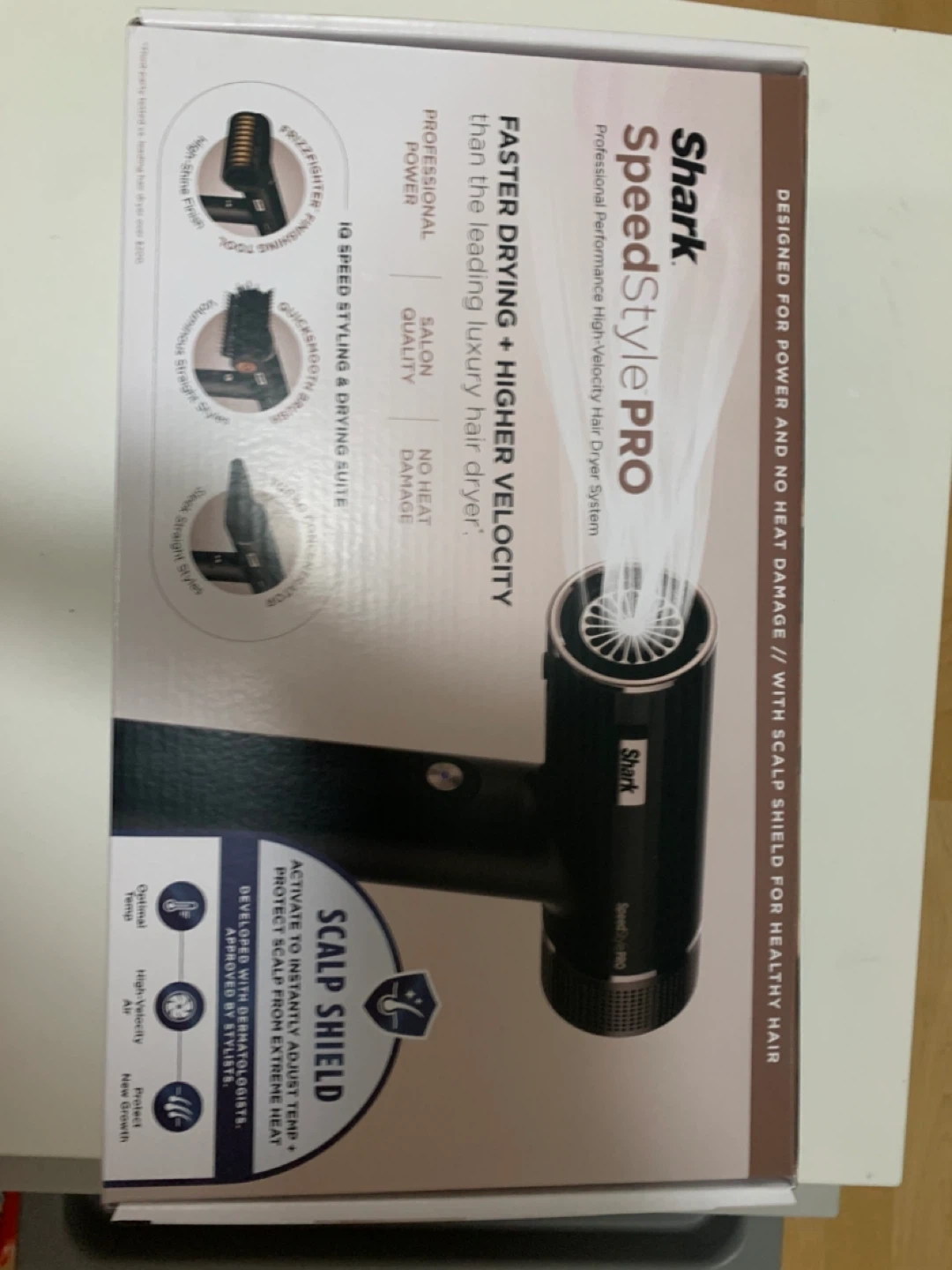 Selling a Shark SpeedStyle PRO Professional Performance High-Velocity Hair Dryer System! It's designed for power and no heat damage, and includes a scalp shield for healthy hair. It features IQ speed styling and a drying suite for faster drying with higher velocity than leading luxury hair dryers. Included are the FrizFighter finishing tool, QuickSmooth brush, and Sleek Straight styles concentrator