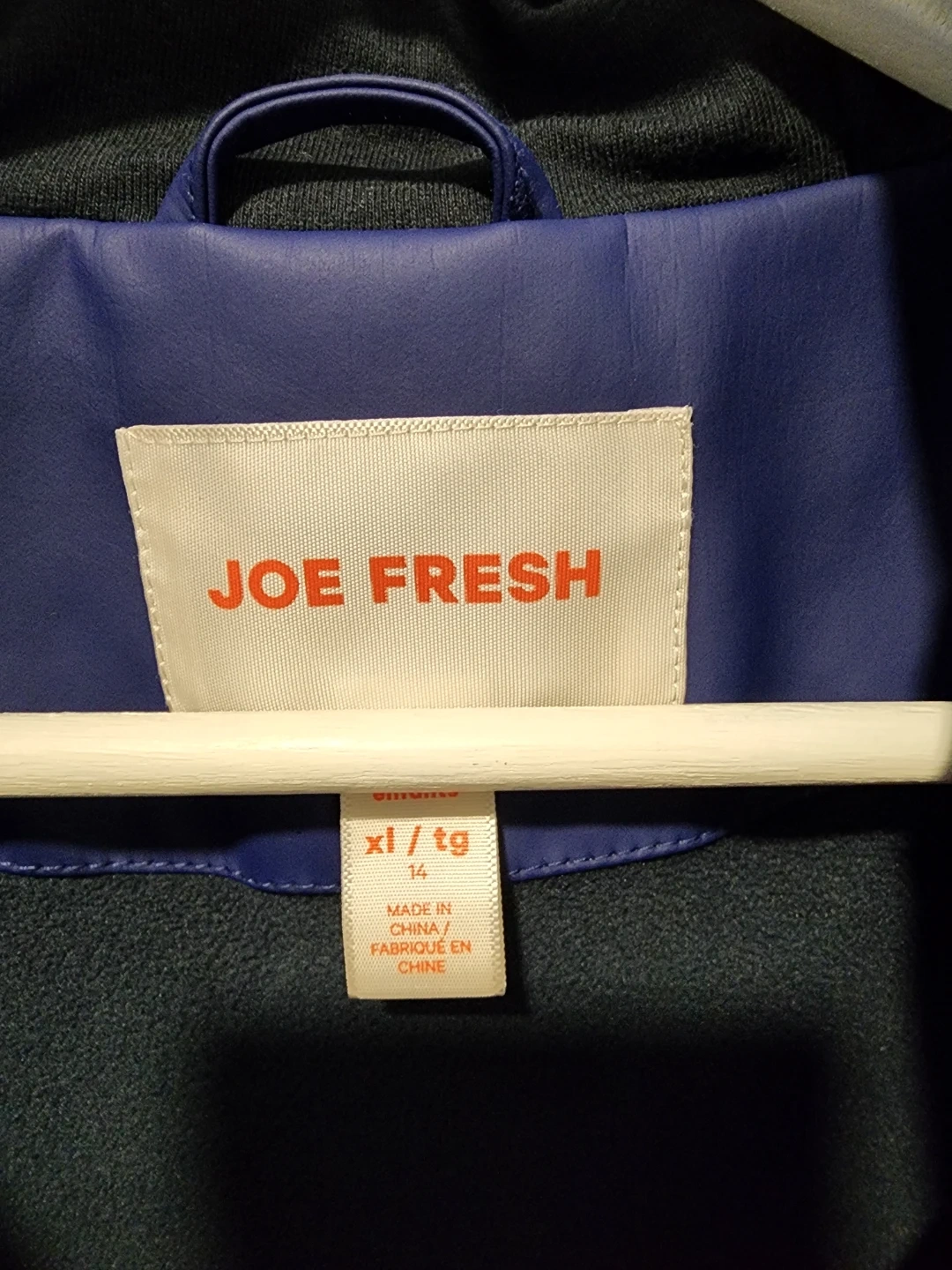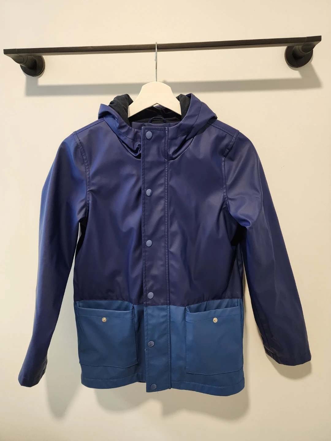 Selling a Joe Fresh rain jacket in excellent condition! It's a size XL (14) and features a stylish two-tone blue design. Perfect for keeping your kiddo dry on those rainy days