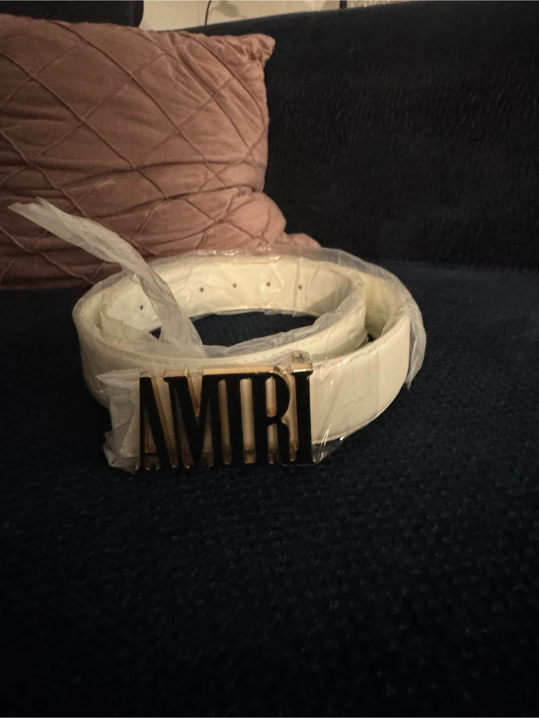 Selling a brand new AMIRI white leather belt! It's in excellent condition and still in its original packaging. The gold and black AMIRI logo buckle really makes it stand out!