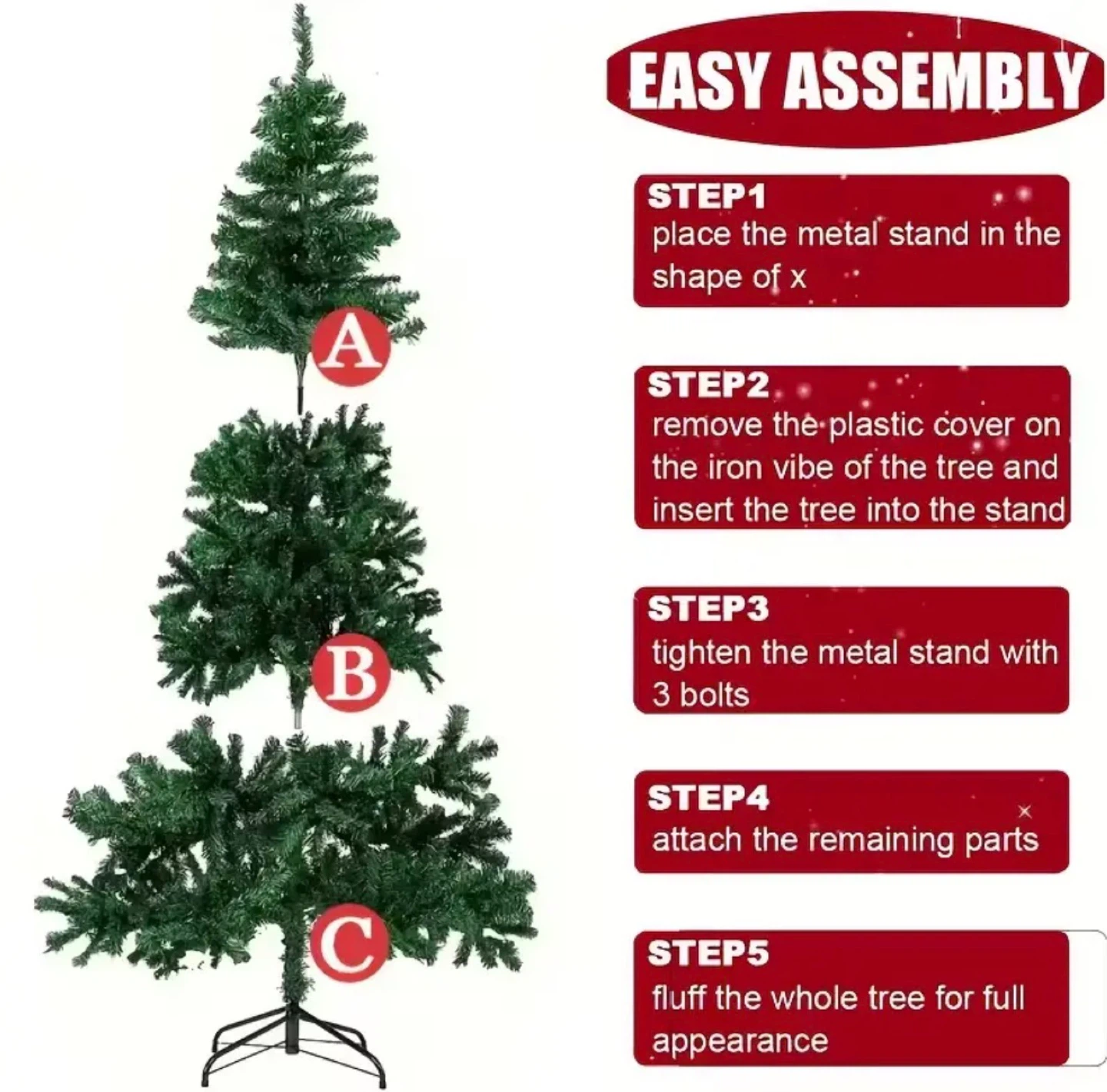 Get ready for the holidays with this artificial Christmas tree! It stands at approximately 70 inches tall and 800 branches and is easy to assemble. Perfect for adding some festive cheer to your home!