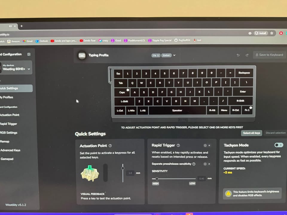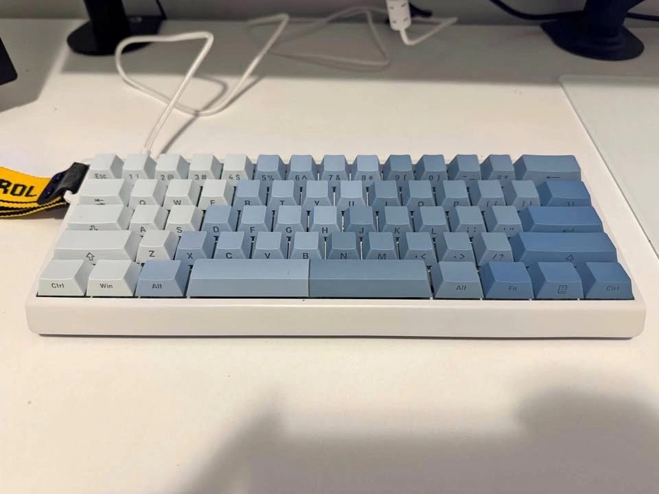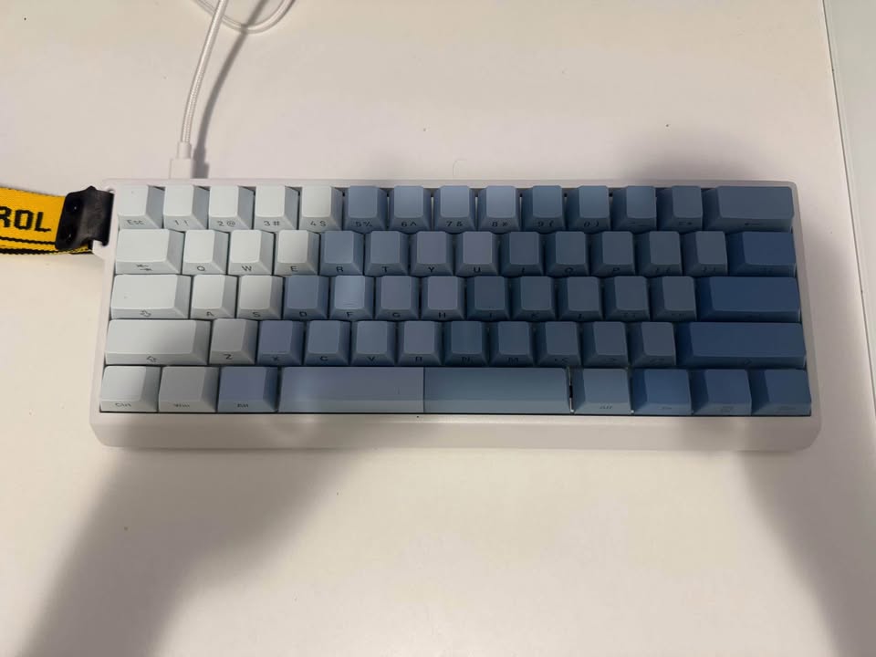 Custom aluminum case and blue and white key caps bought it earlier this year around January selling it cause I don’t really use the wooting features for games.