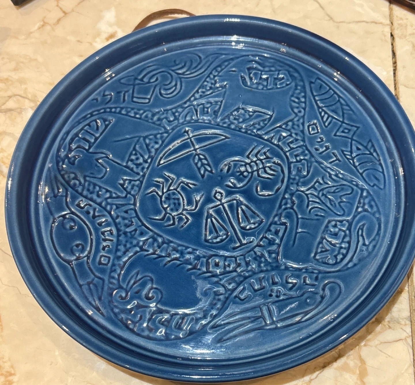🥕 This is a beautiful W. M. Yind Zodiac plate with intricate designs and a lovely blue colour. It's perfect for adding a touch of artistry to your home decor!