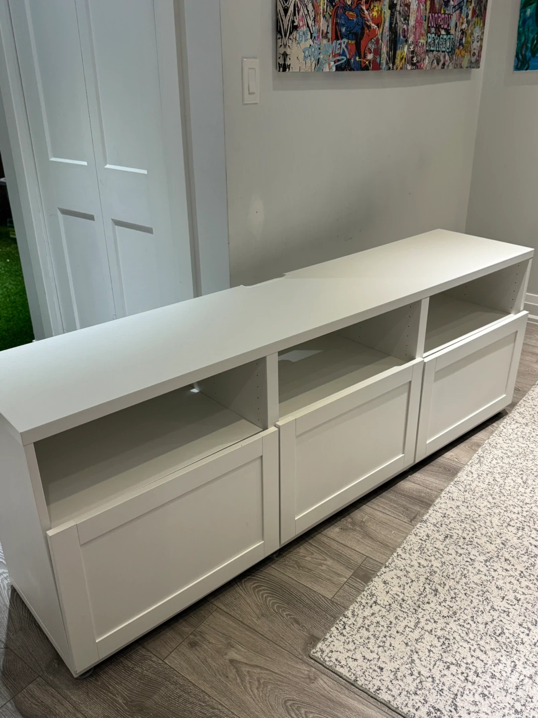 Looks great with a TV or amazing storage for toys, office and any kind of your organizational needs!