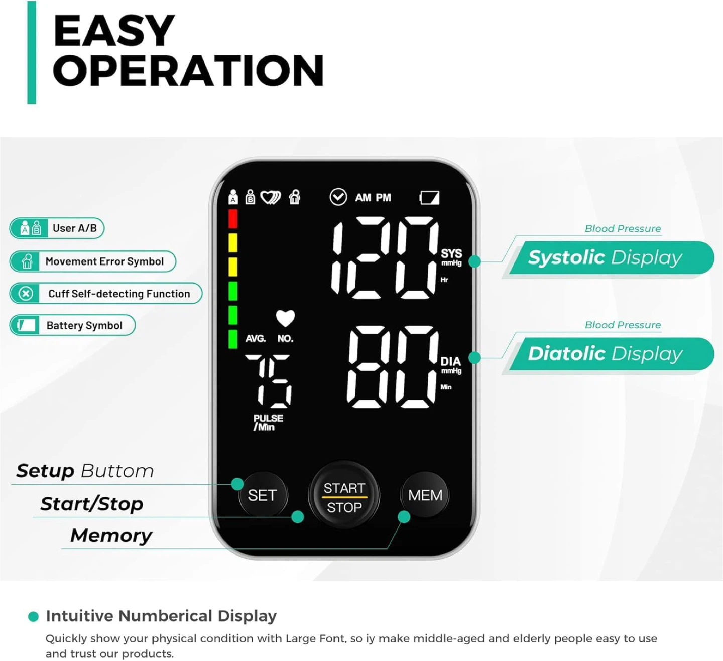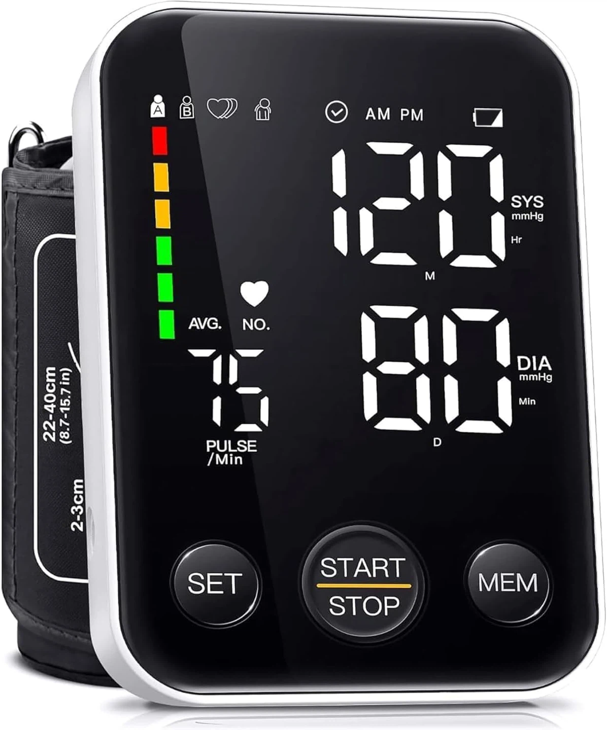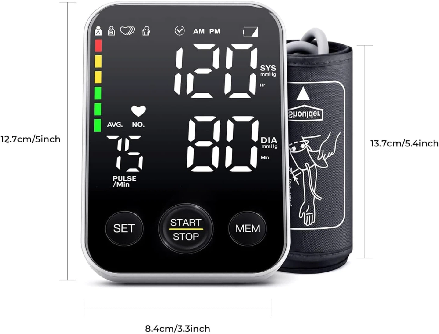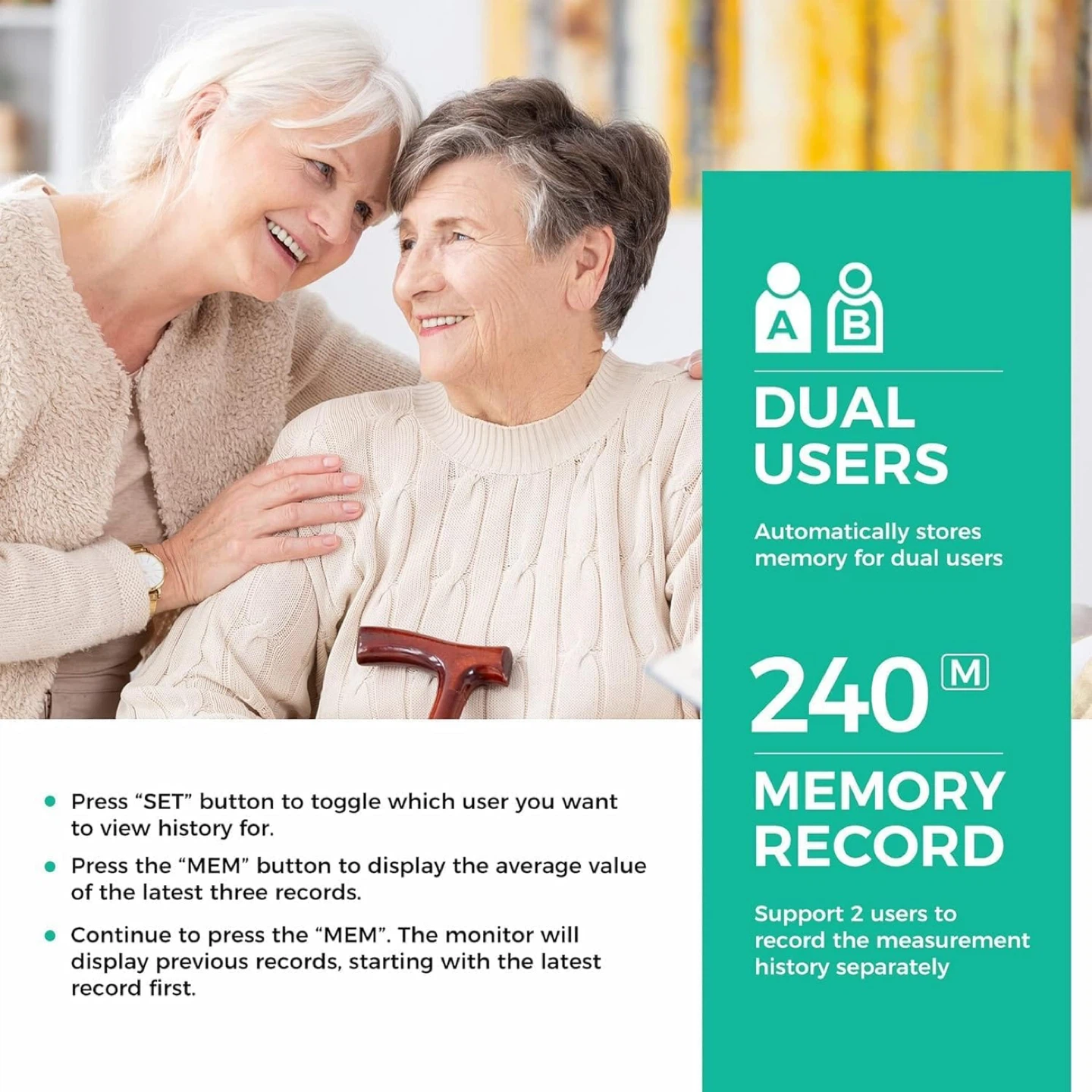 This digital blood pressure monitor is easy to use and great for keeping track of your health at home! It features a large font display that's easy to read, making it perfect for middle-aged and elderly folks. It can store memory for two users, with a 240M memory record, and the cuff is a big size suitable for most adult arm sizes. The cuff's length is 22cm-40cm