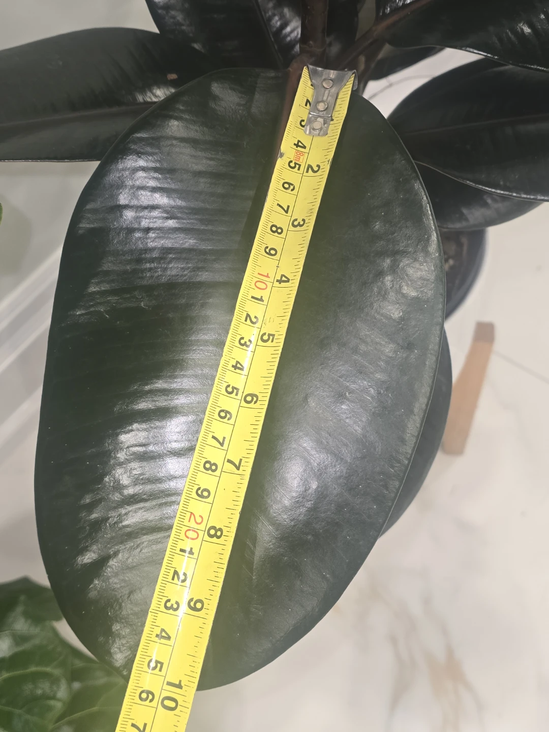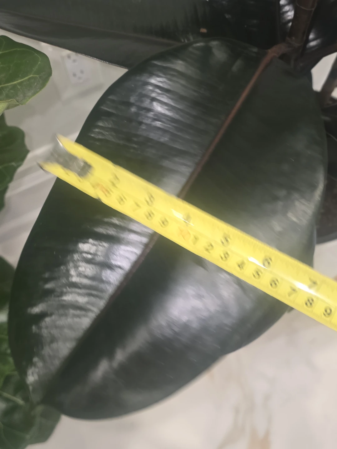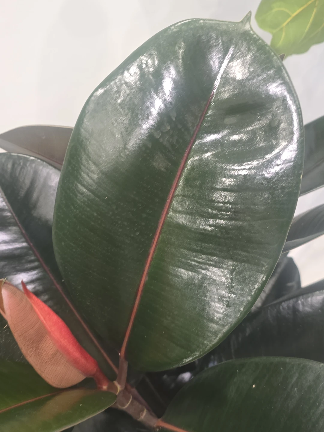 Rubber plant with healthy leaves! The leaves are about 10 inches long and have a beautiful dark burgundy colour