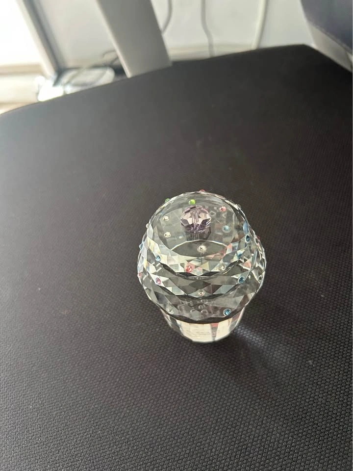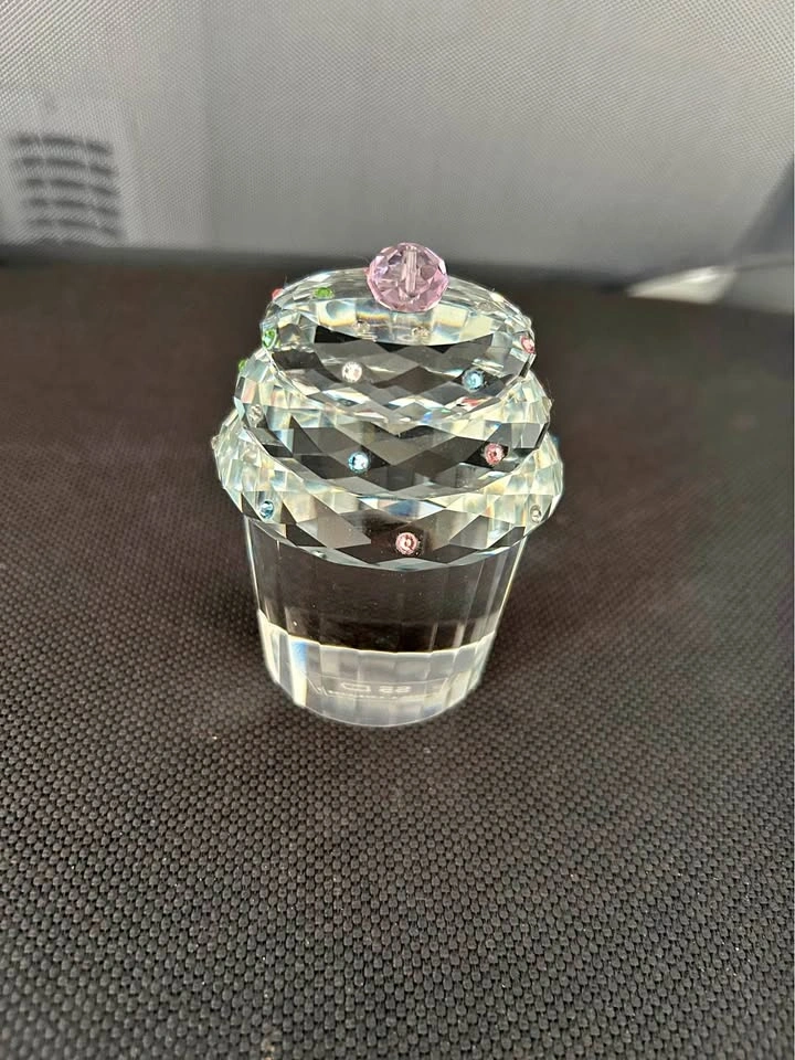 10Adorable crystal cupcake with coloured rhinestones. No chips or cracks. 4 inches high by 3 inches wide.