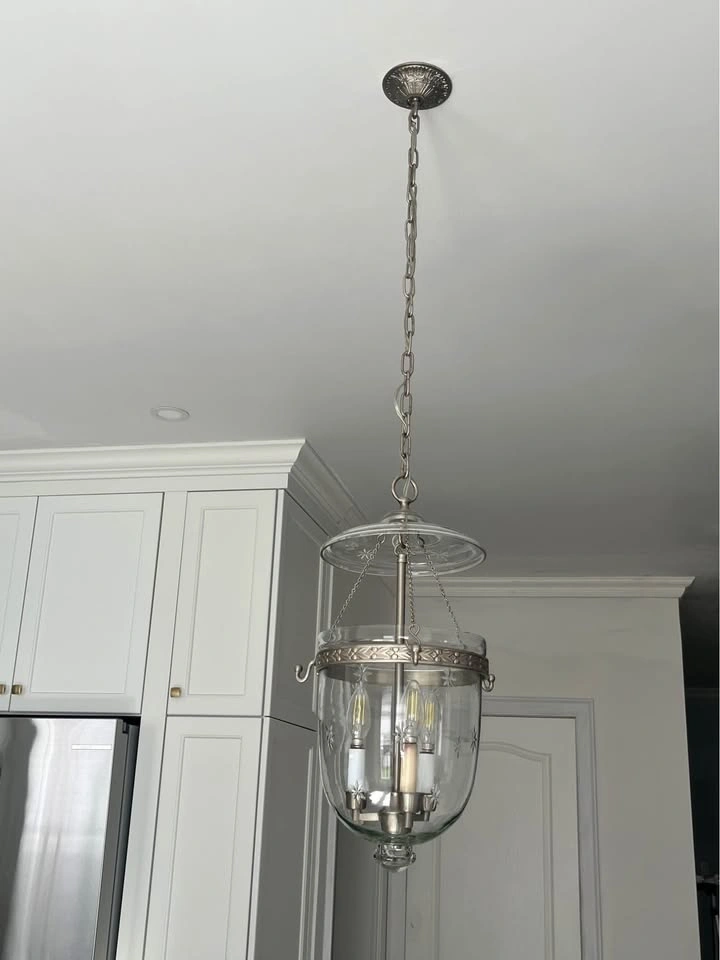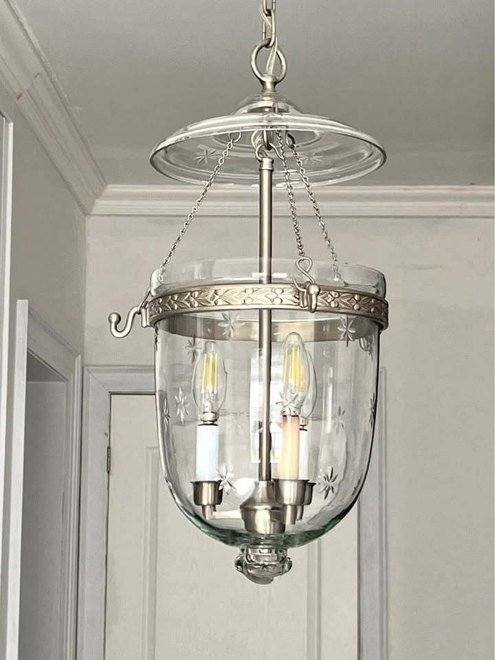 10Two excellent condition chrome and glass hanging pendant light fixtures. No cracks or chips. Each $70.