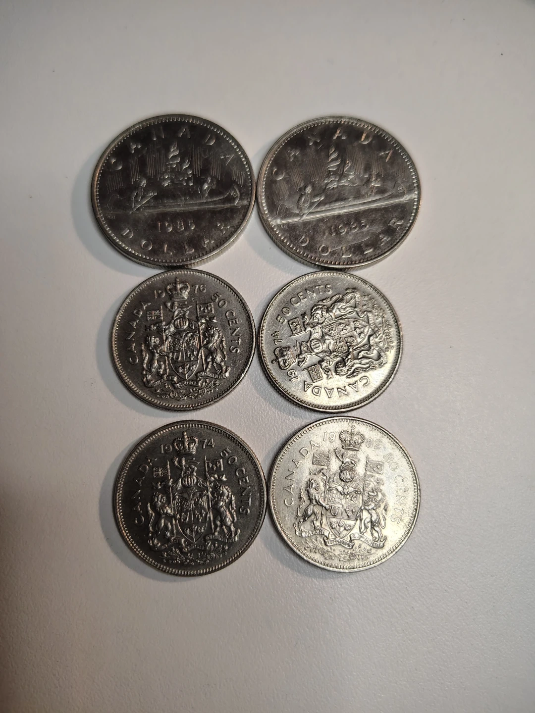 2 Canada Silver Dollars & 4 - 50 Cents LOT