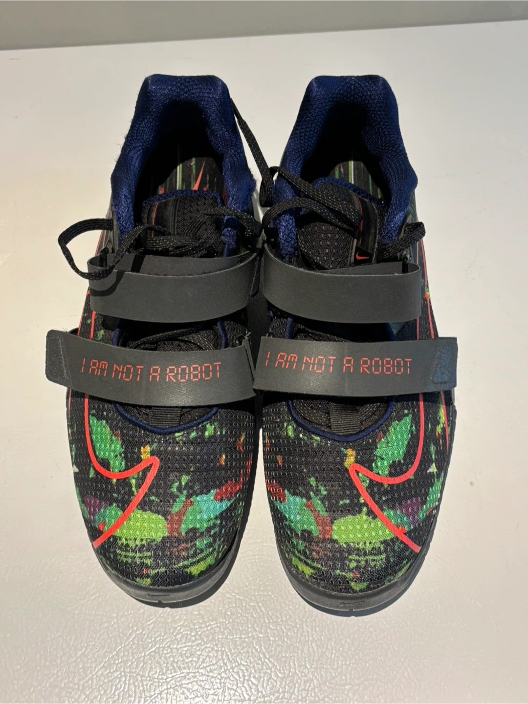 These Nike Romaleos 4 training shoes feature a unique 'I am Not a Robot' design! Perfect for weightlifting, they offer great stability and support. They're in amazing condition and ready for a new home!