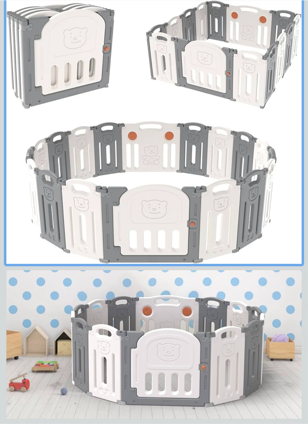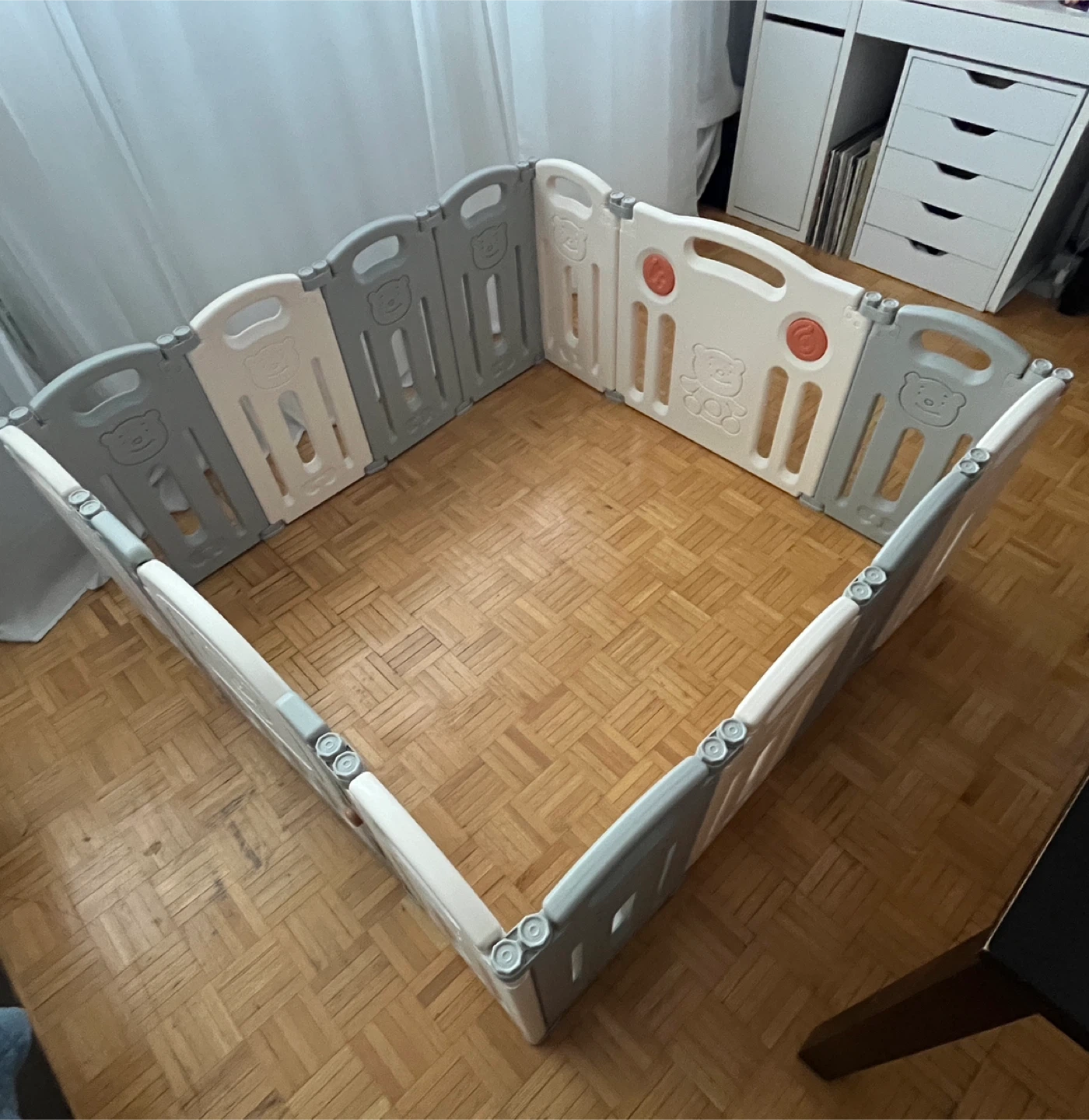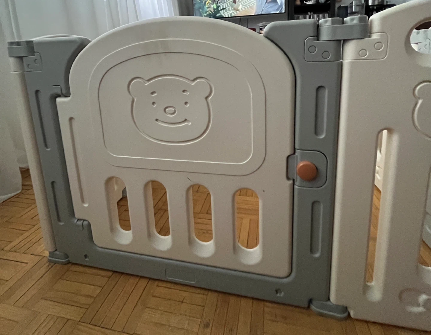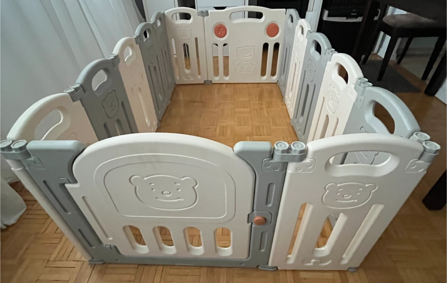 The playpen features cute bear designs on the panels, may be use in different sizes 100x170 cm, 130x130 cm etc.