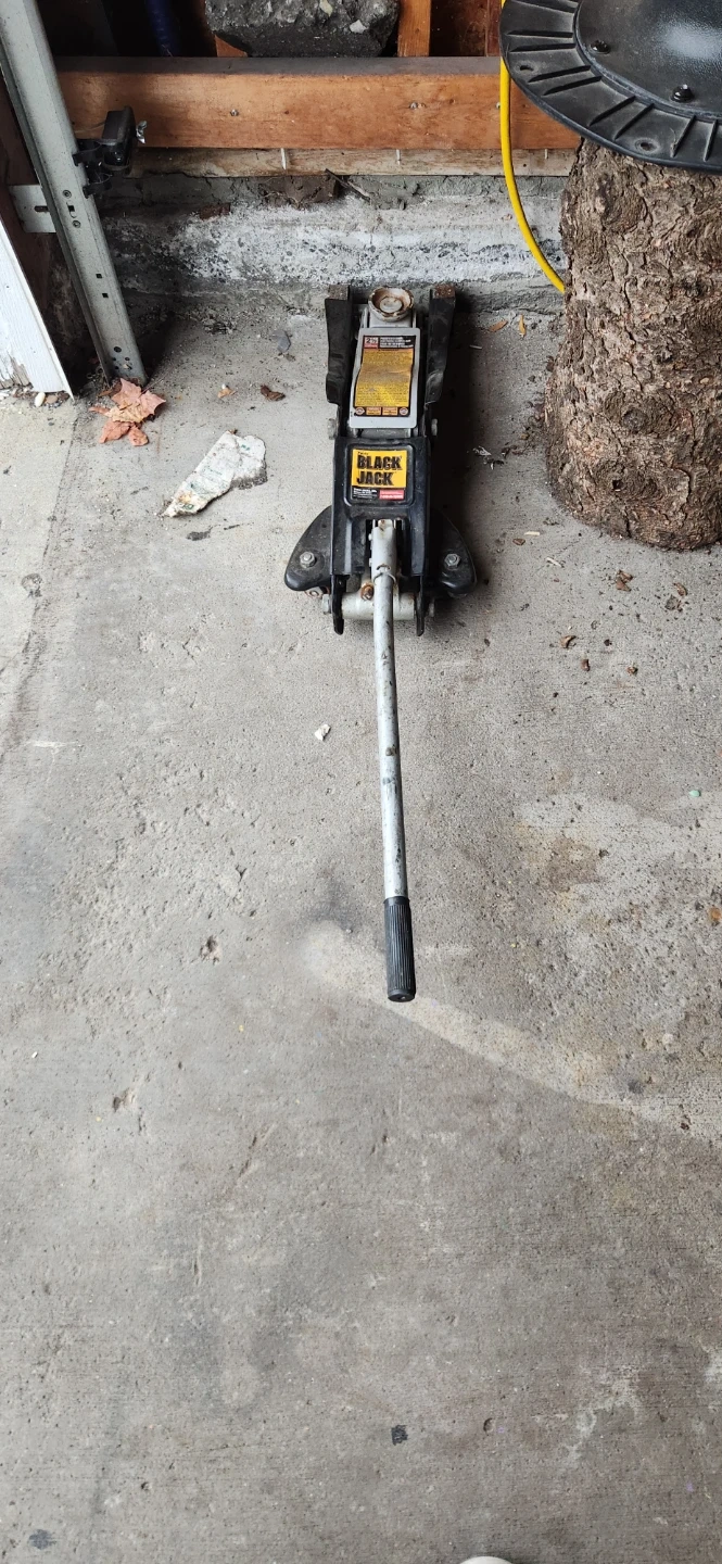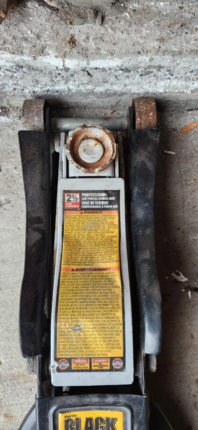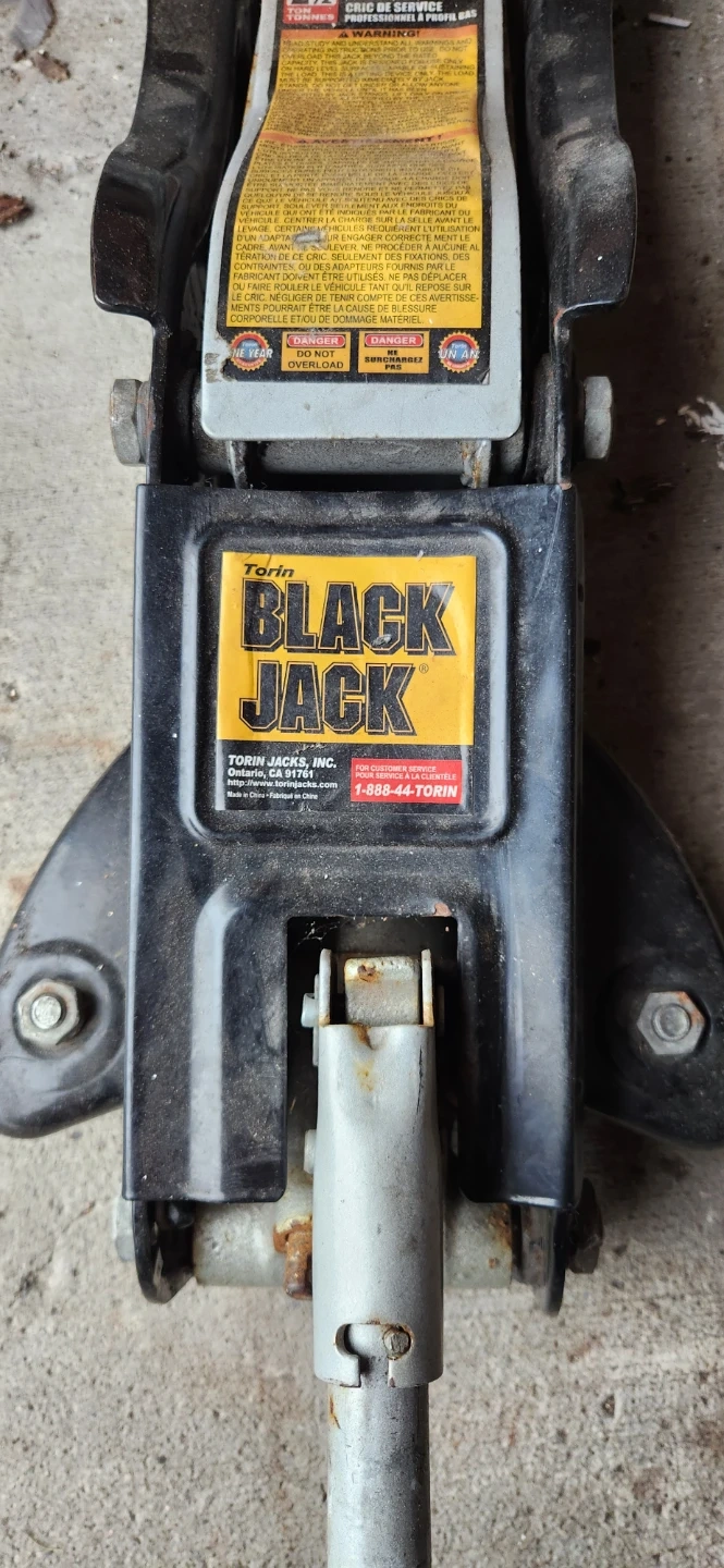 Selling a Torin Black Jack professional floor jack with a 2.5-ton capacity. It shows signs of use but is still functional. The handle is broken.