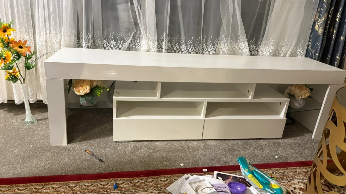 Selling a Blanc 78.5" TV unit in white! It has clean, modern lines that would suit any decor. It features two storage spaces and two drawers to store your stuff away. Originally bought for $329 used just 2 months ago
