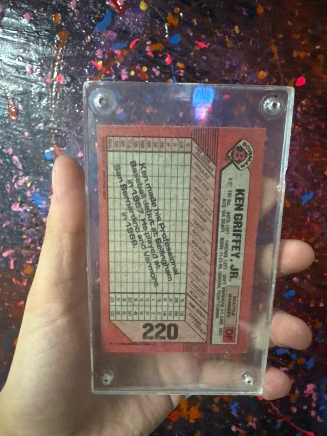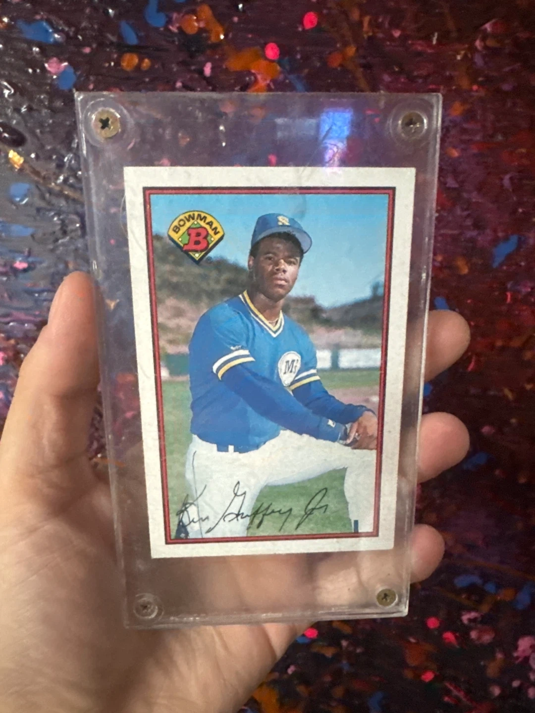 Selling a Ken Griffey Jr. Bowman baseball card in great condition! A must-have for any baseball collector. It's a junior card from 80’s. $150 or best offer. Comes with plastic case. Pick up James Edward park.