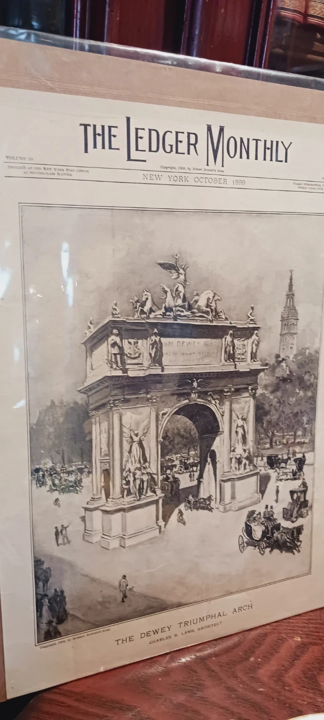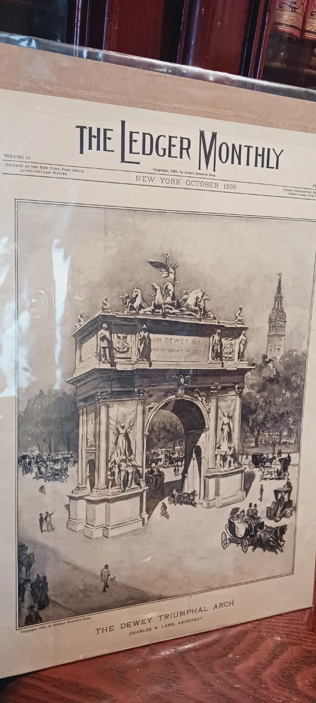 1000+The Cover Page of " The Ledger Monthly" from New York, dated October 1899. It features a picture of The Dewey Triumphal Arch. This is a great piece for collectors or anyone interested in historical items. 15"×11". ALL MY PRICES ARE NEGOTIABLE. It is not framed, selling as is.