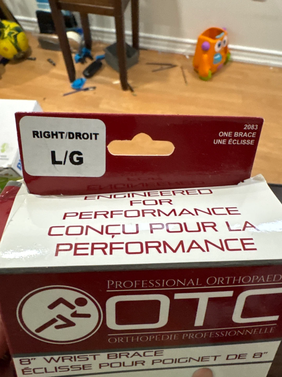 Selling an OTC 8" wrist brace, size large. It's designed for performance and provides professional orthopaedic support. Perfect for anyone needing wrist support!pick up Scarborough golf club rd n Lawrence