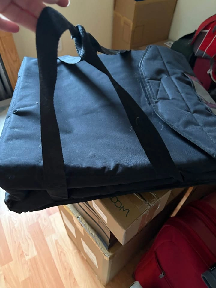 Two new food delivery bags, one flat for pizza and one large. $75 for both OBO. Brand new, Never used, just a bit dusty from being in storage.