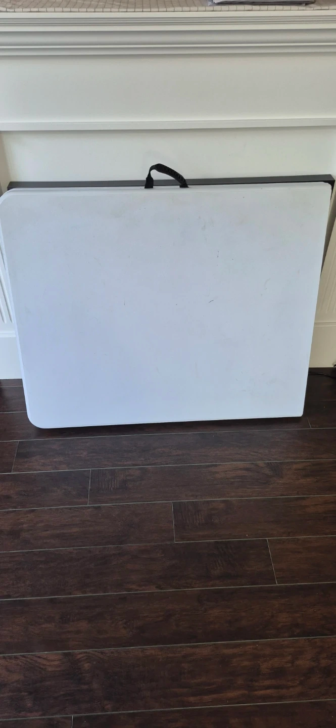 Selling a folding table in white.