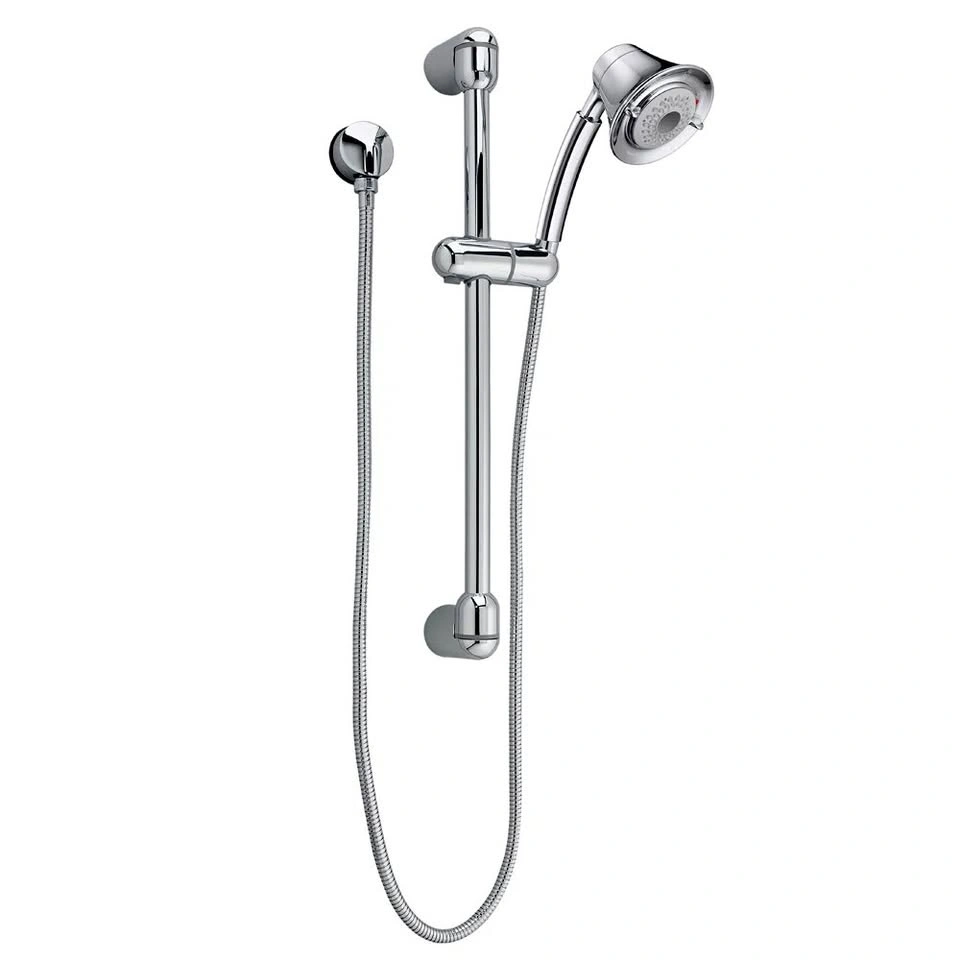 Saving water never goes out of style. The FloWise Transitional three-function handshower delivers an invigorating shower using 20% or 40% less water. The kit complements bathrooms with casual décor and includes a matching 59" shower hose, wall supply and a 25" Standard slide bar so you can position the handshower just right. FloWise showerheads use our exclusive turbine technology to deliver an invigorating shower experience while saving water. These innovative heads can save a family up to 8,000 gallons of water a year. Complete personal shower system Includes: wall supply with 1/2" NPT female inlet, 1/2" NPSM male outlet 59" (1500) shower hose FloWise Transitional 3-Function Hand Shower 25" Standard slide bar 3 spray settings: Turbine spray at 1.5 gpm Max. Flow Rate; Full Spray at 2.0 gpm Max. Flow Rate; Combination spray at 2.0 gpm Max. Flow Rate Quantity 2 available, item is brand new in box and located in Port Robinson