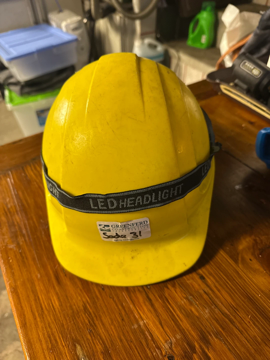 Selling a Greenferd Construction hard hat in yellow! It comes with an LED headlight attached, which is super handy. It's in good condition and ready for use on the job site
