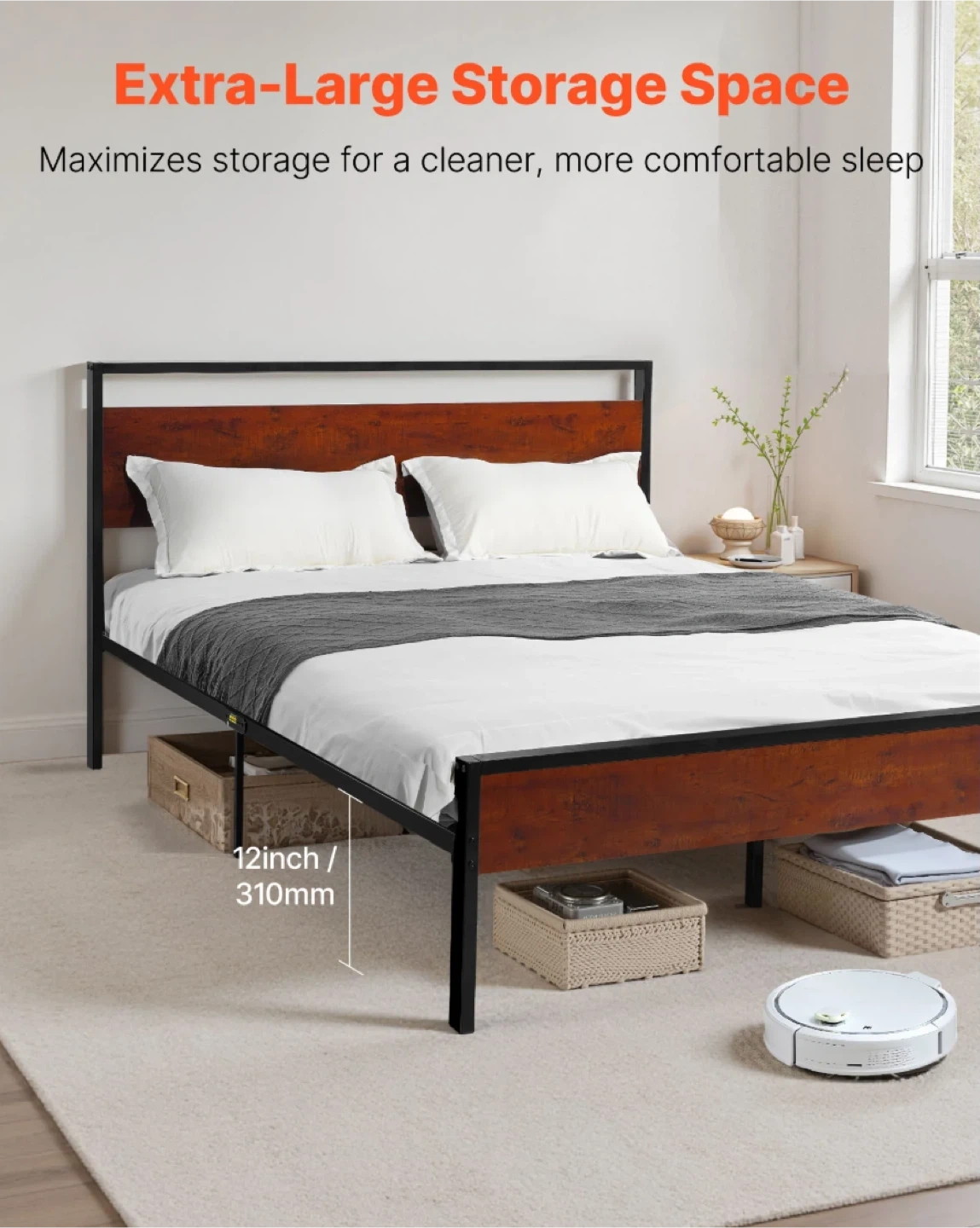 VEVOR 14” Metal Platform Frame w/ Headboard & Storage