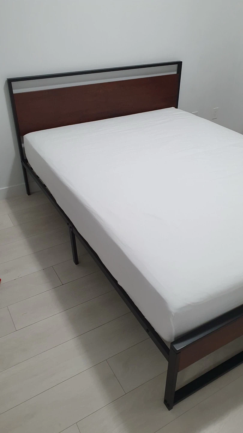 Selling a Queen mattress + metal bed frame — both like new!