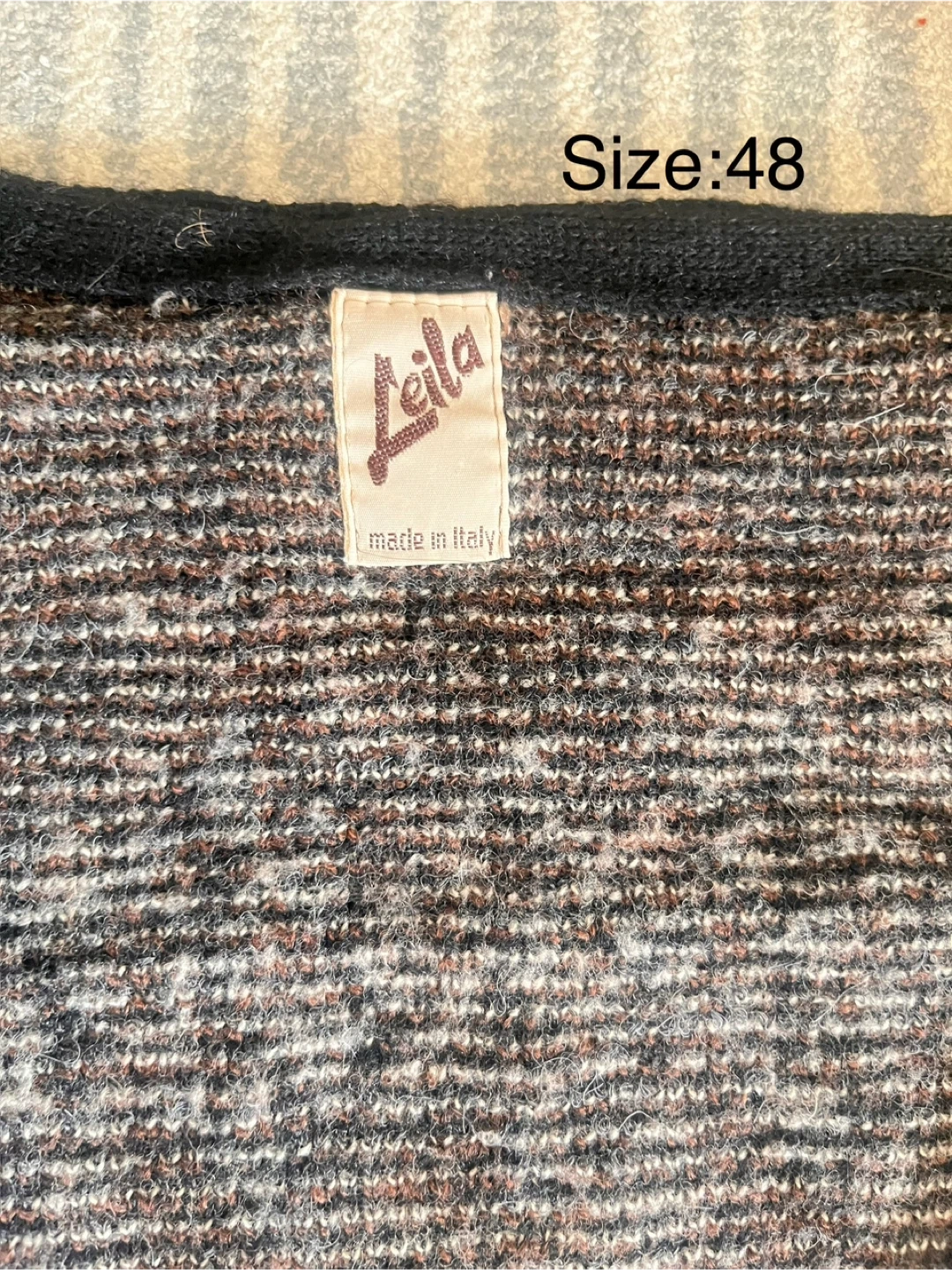 Selling a Leila cardigan in size 48. The cardigan features a unique pattern and is made in Italy. Perfect for adding a touch of Italian style to your wardrobe!