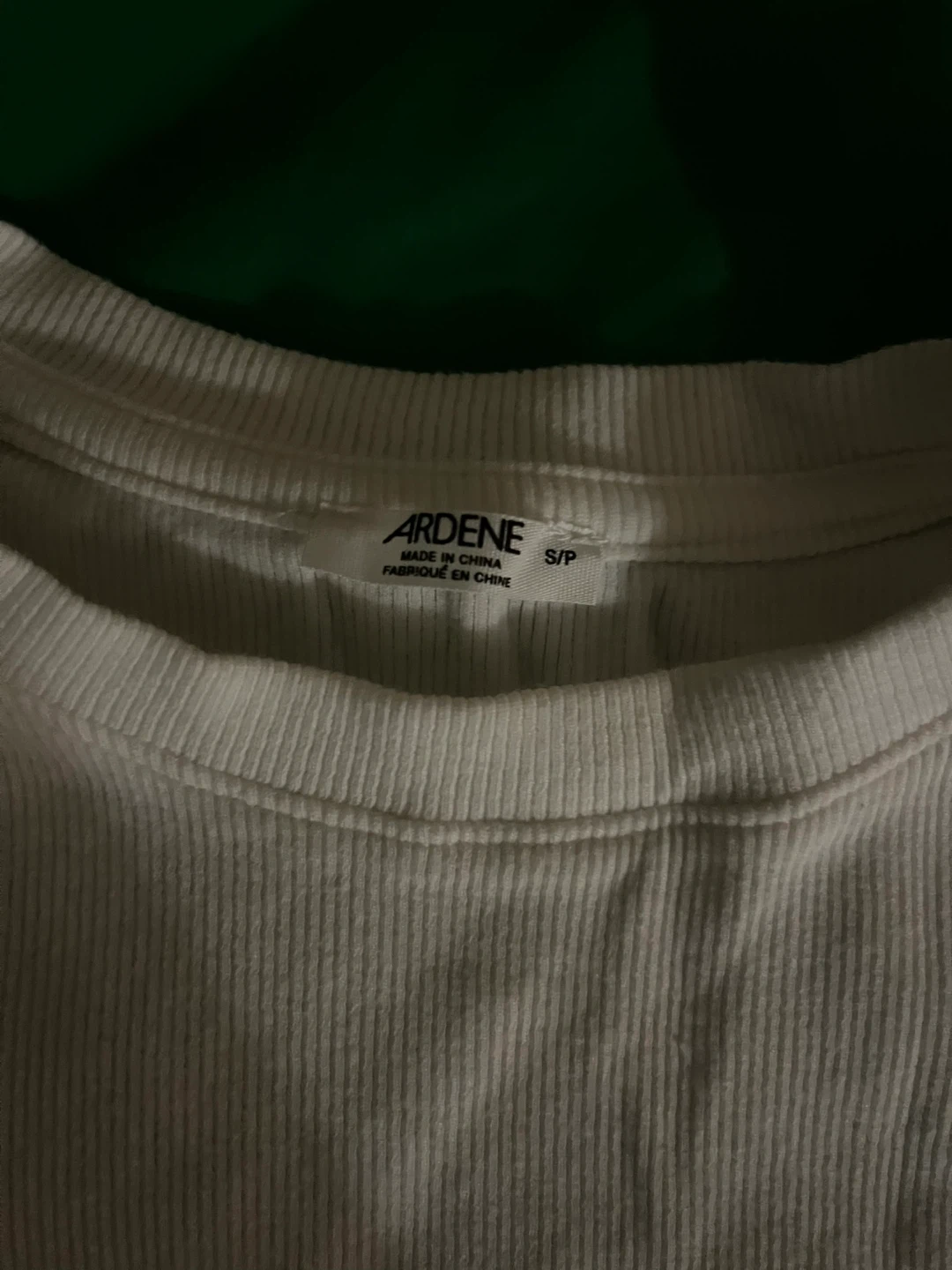 217Selling an Ardene white ribbed top in size S/P! It's in great condition and ready for a new home. Perfect for layering or wearing on its own!