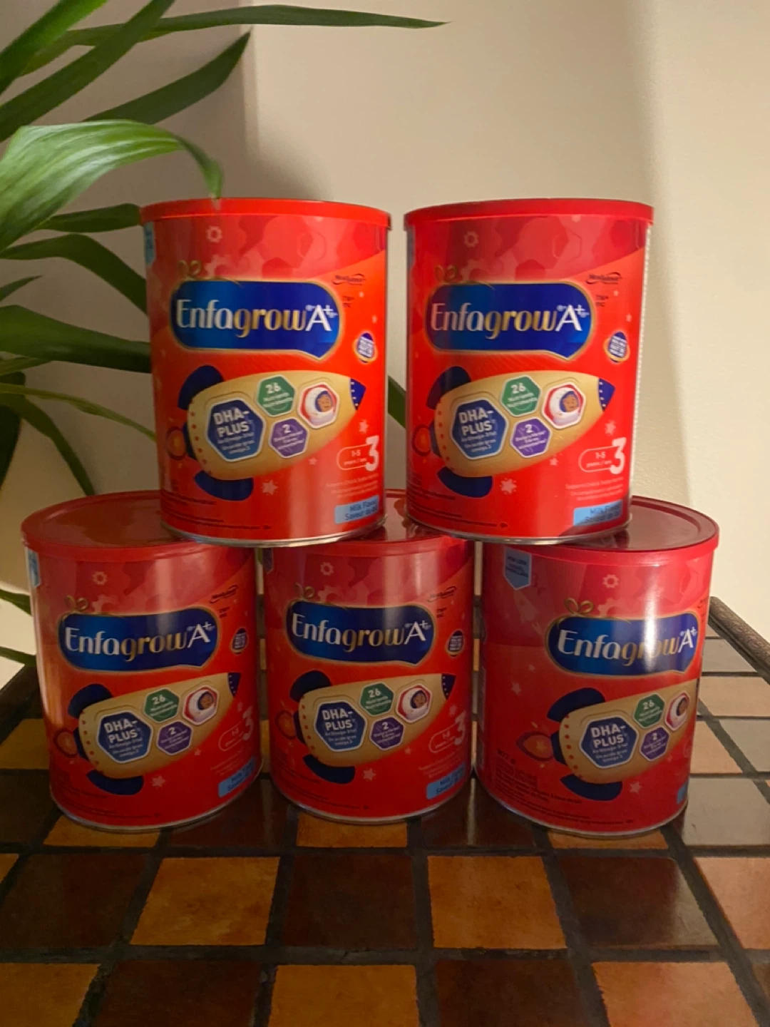 Five unopened tins of Enfagrow A+®, Toddler and Child Nutritional Drink