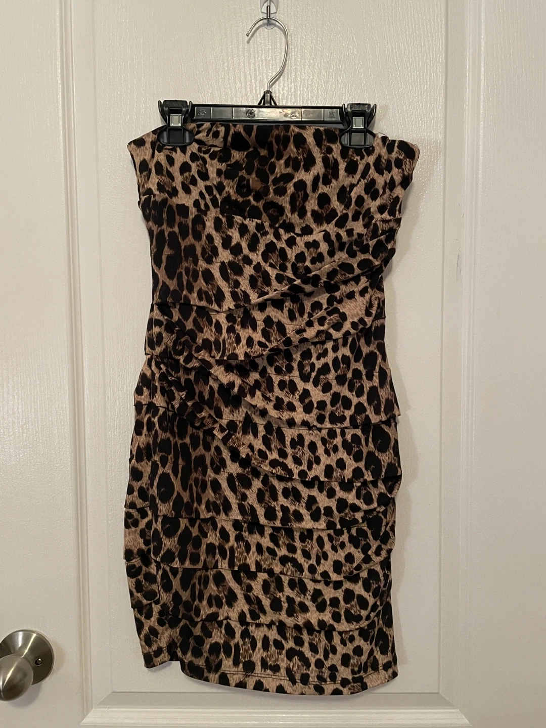 108Cute leopard print dress! It's a strapless mini dress size medium. Never been worn