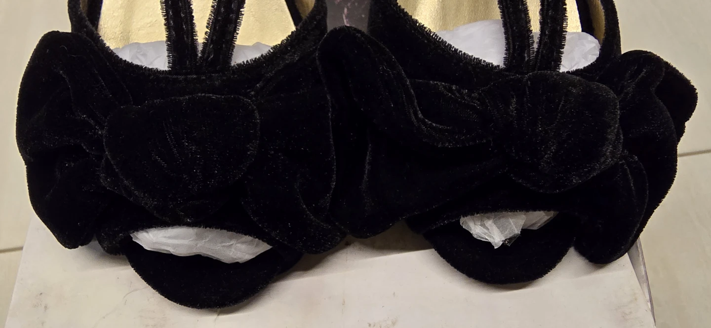 NEW! Girl's Black Fancy Bow Velvet Shoes! - Size 4