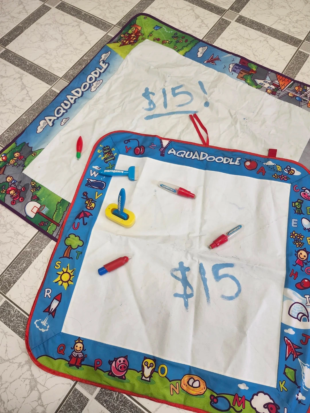 2 Aquadoodle mats, 2 refillable Aquadoodle water pens, 2 water brushes with pot & 2 bonus H20 pens! So much mess free fun coloring with water! Pick up in Kitchener, $15 for all
