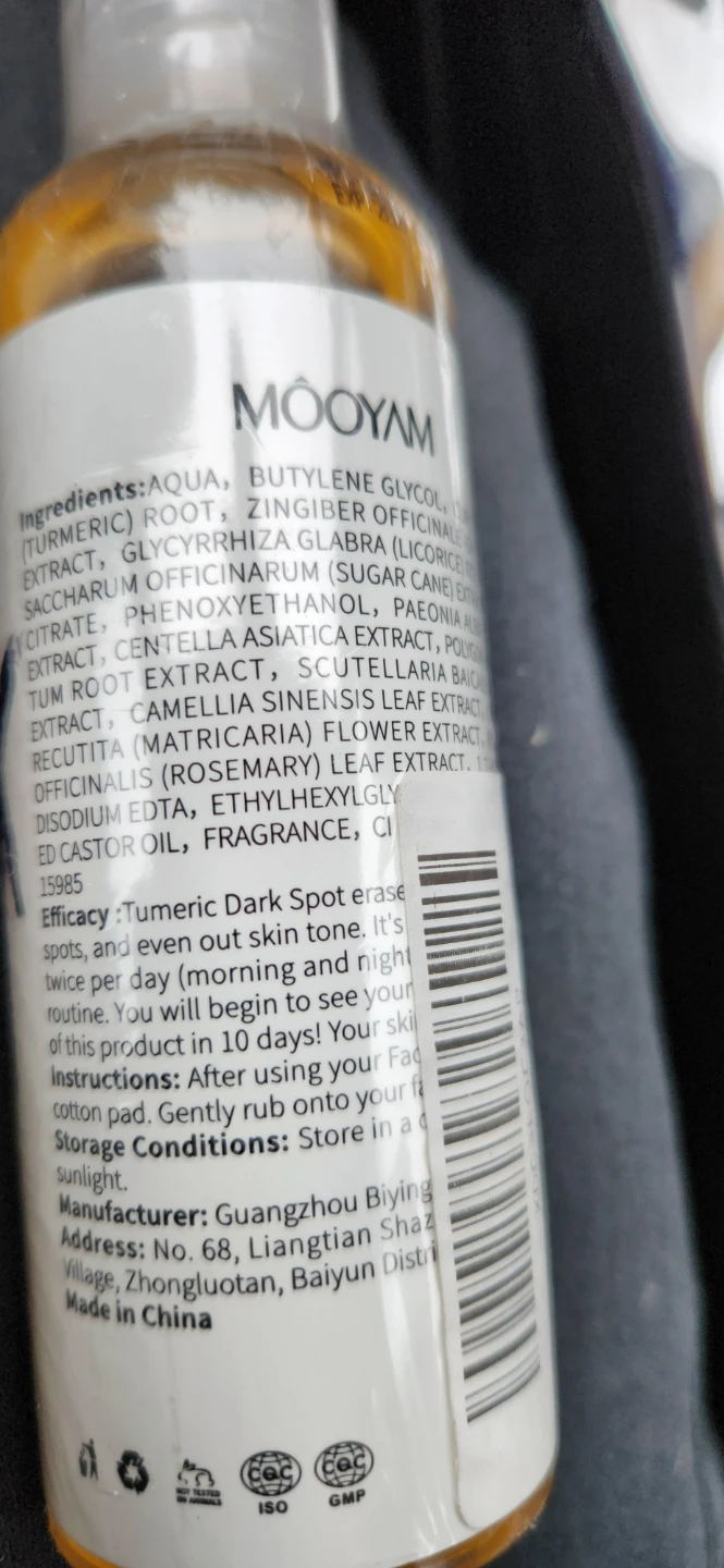 I'm selling a bottle of Mooyam Turmeric Toner, perfect for erasing dark spots and evening out skin tone! The bottle contains 100ml of product. It's very effective and easy to use, just apply to a cotton pad and gently rub onto your face after washing!
