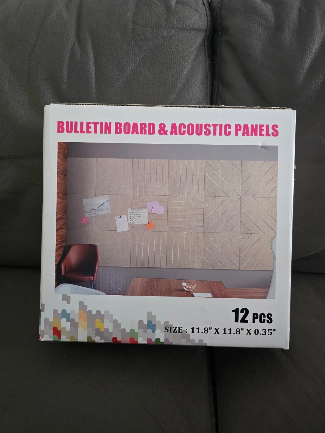 Selling a box of umi. Acoustic Bulletin Board & Acoustic Panels. Each panel is 11.8" x 11.8" x 0.35". There are 12 pieces in the box. They're easy to install and can be used in various indoor places!