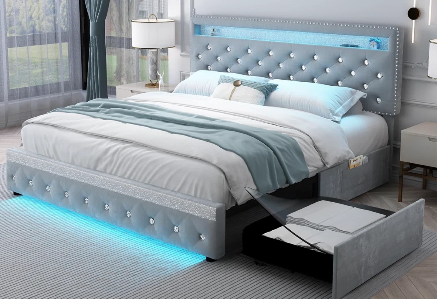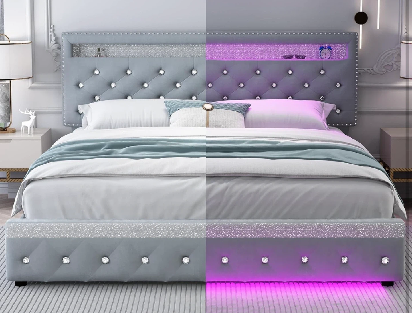 Lit Queen Size Gris avec Lumières LED
