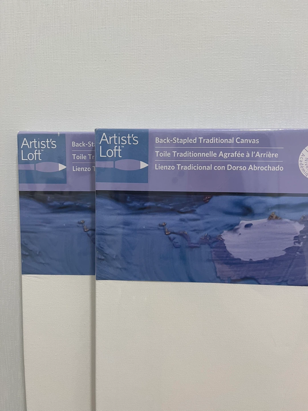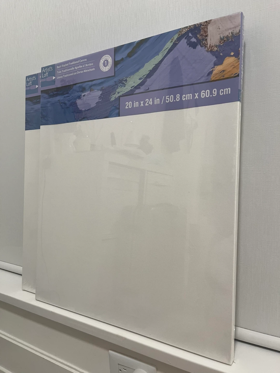Selling two Artist's Loft back-stapled traditional canvases. They are 20 inches by 24 inches, or 50.8 cm x 60.9 cm. Perfect for your next art project!