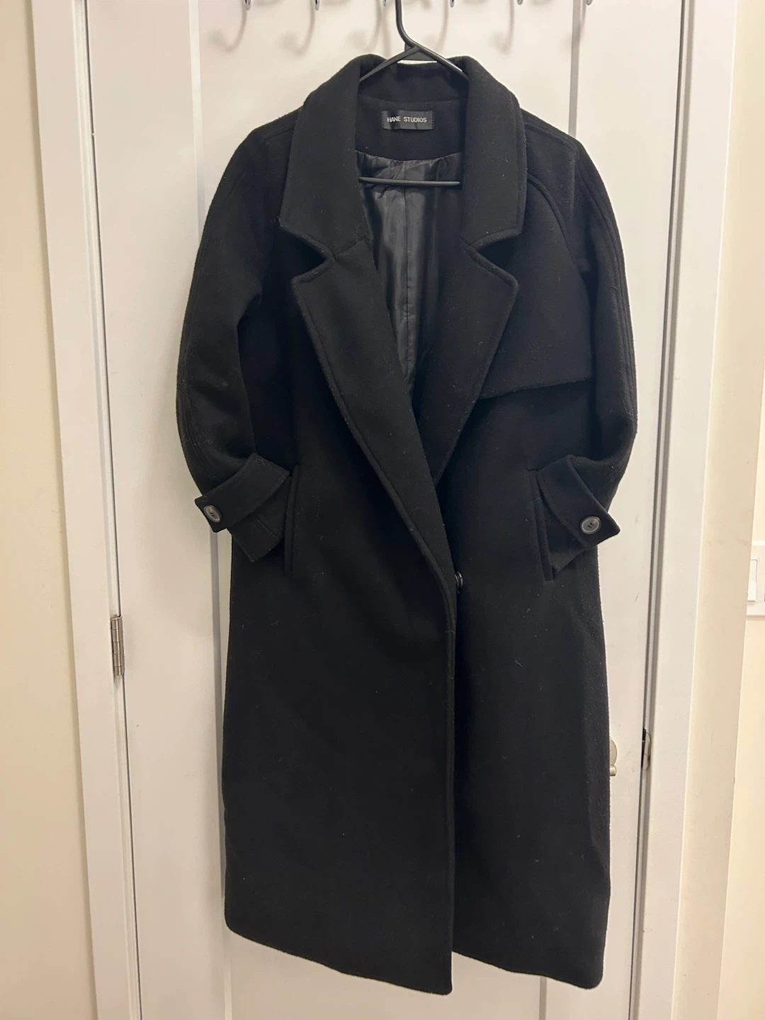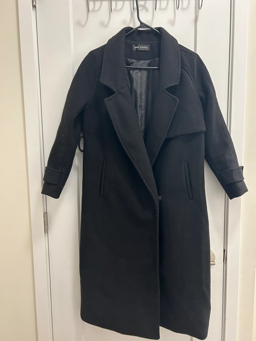 Selling a long black coat from Hane Studios! Size fits from S/M