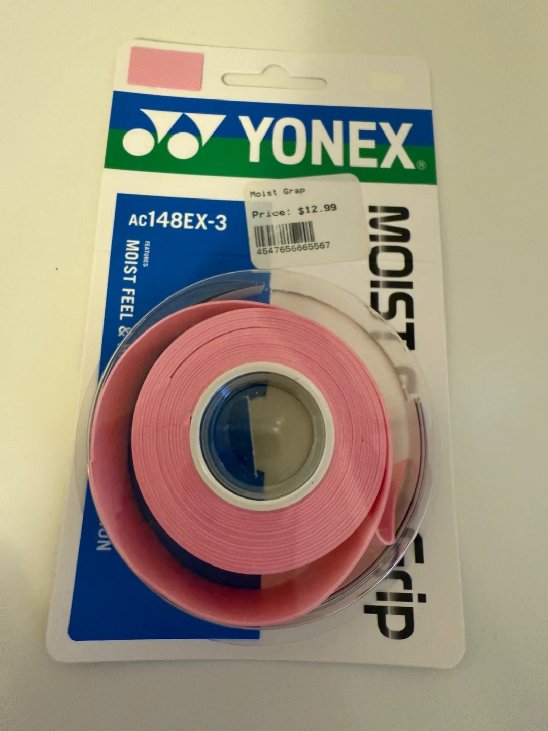 Selling a brand new Yonex AC148EX-3 Moist Grap in pink! It's still in the original packaging. The price tag shows it was originally $12.99.