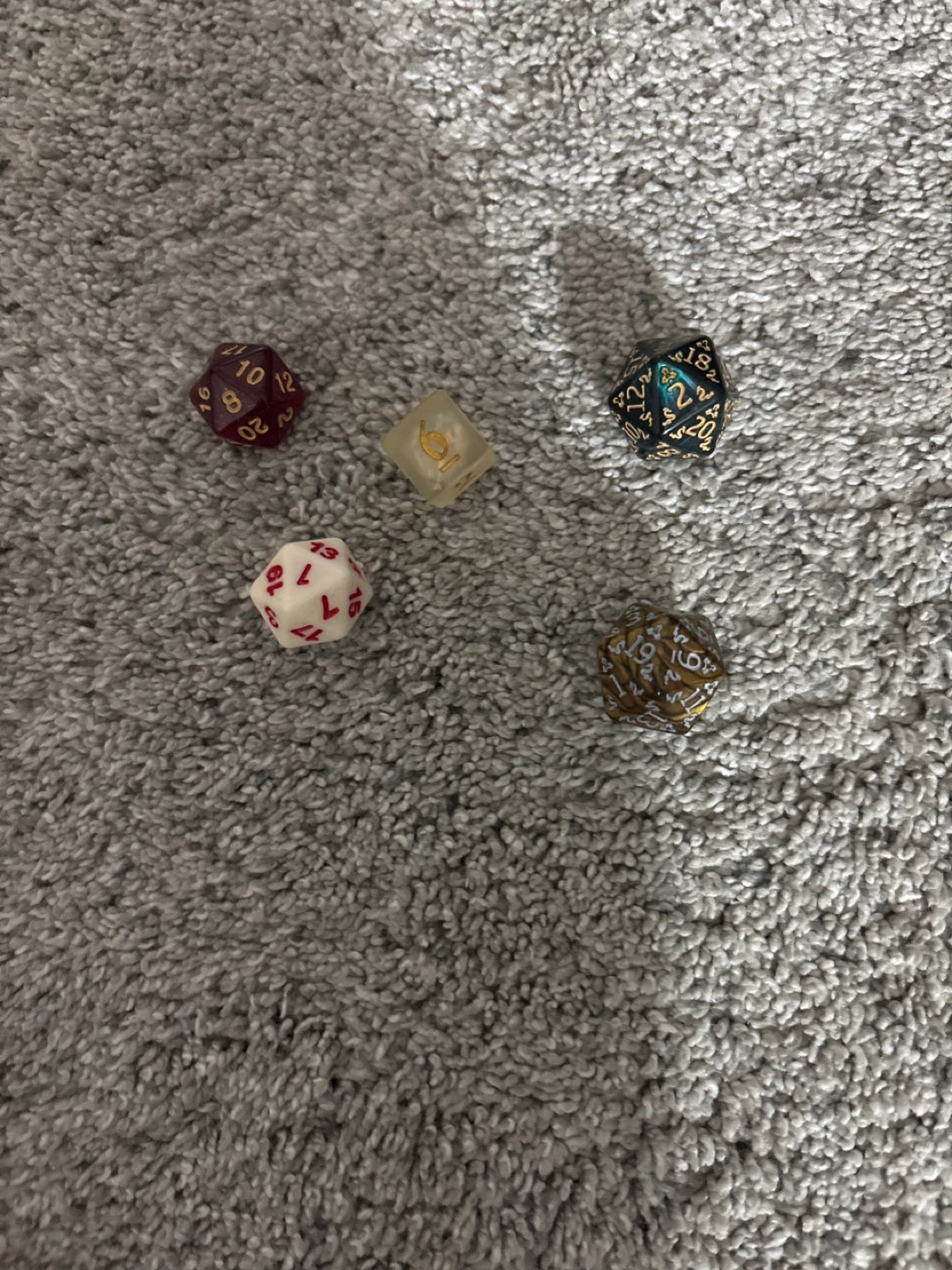 Buy & SellSet of 5 D&D DiceSet of 5 D&D Dice$2Selling a set of five D&D dice! They're in good condition and ready for your next adventureConditionNewWHERE TO MEETCheck LocationView MapSELLERJasperCrystal Shores181 review0 chats·0 favorites·3 views