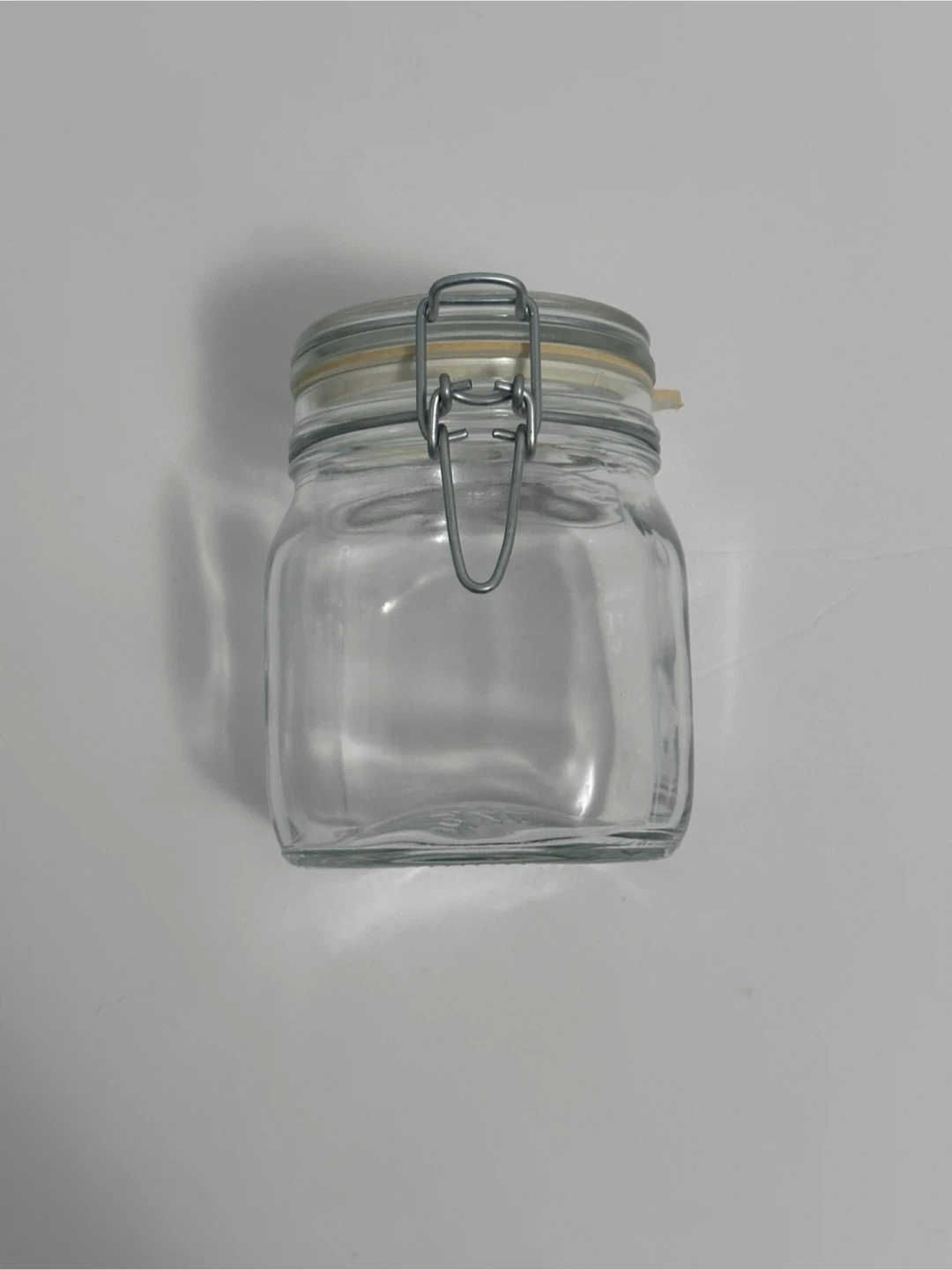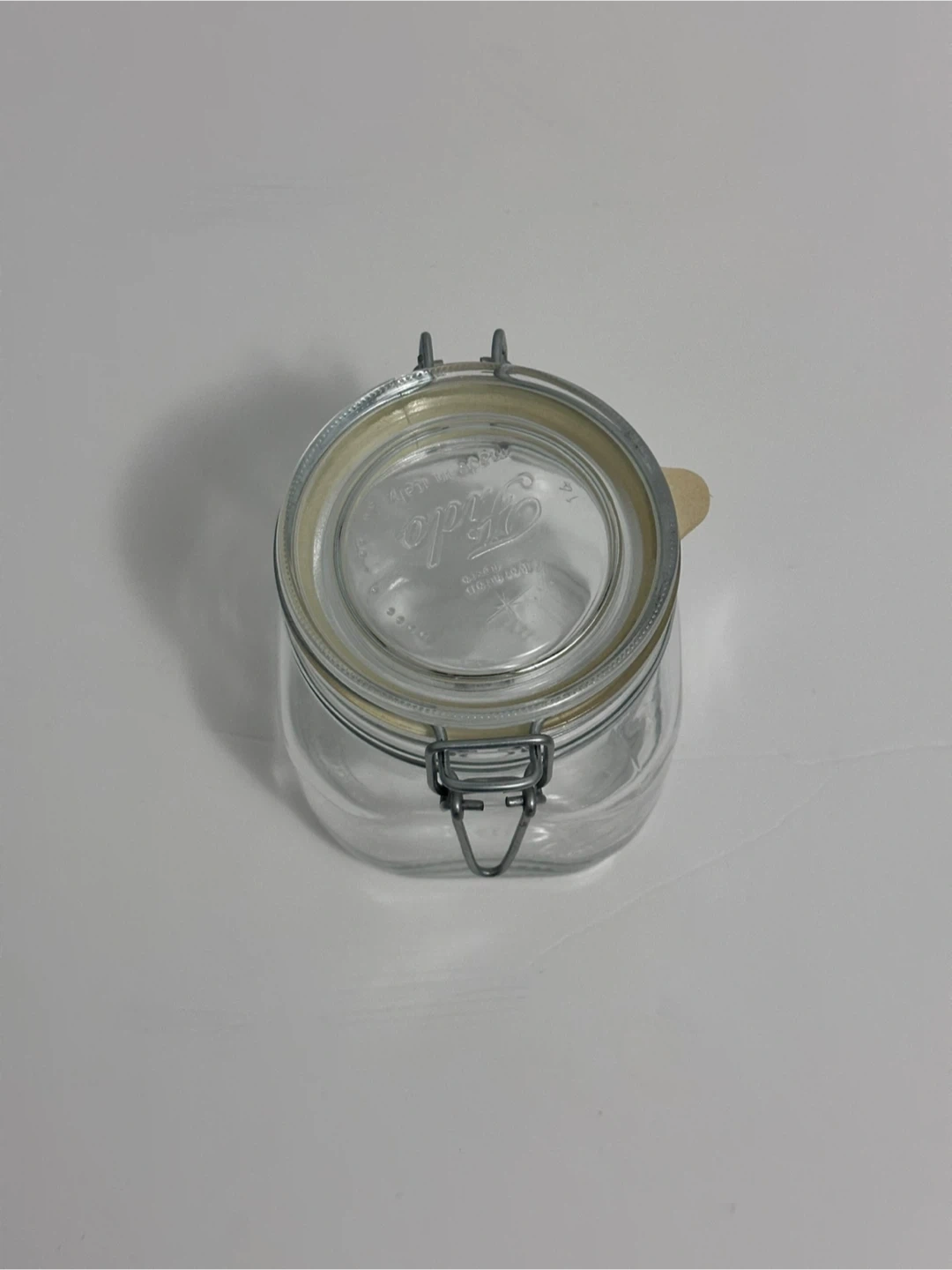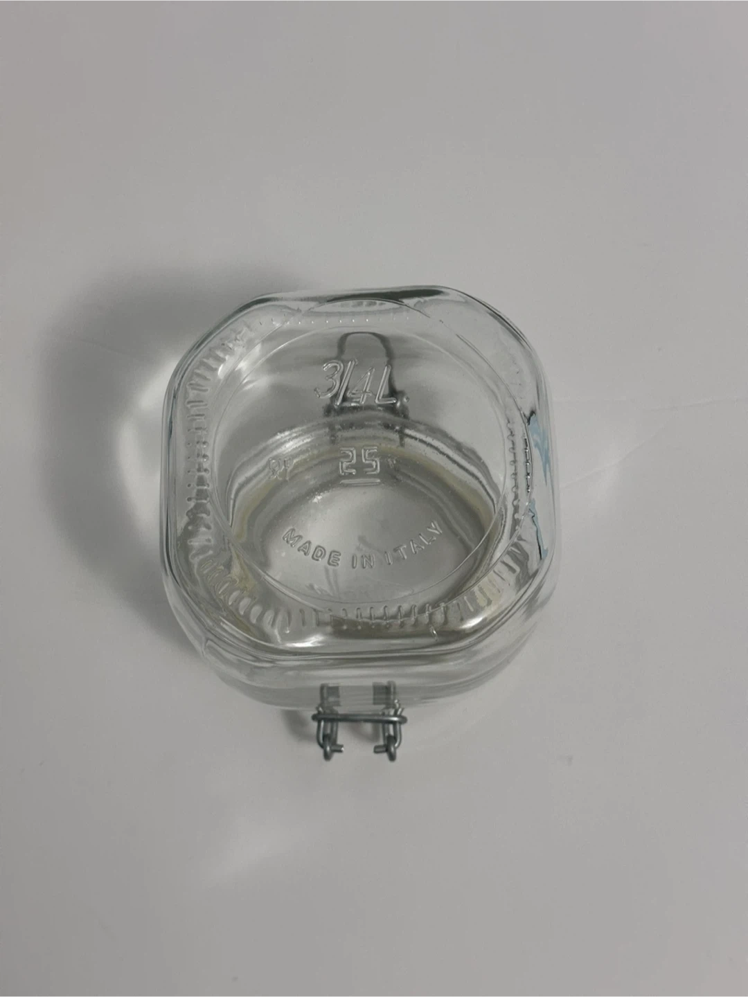 Selling a Bormioli Rocco Fido Jar. It's a clear glass jar with a metal clasp and rubber seal. The jar has a capacity of 3/4 L.