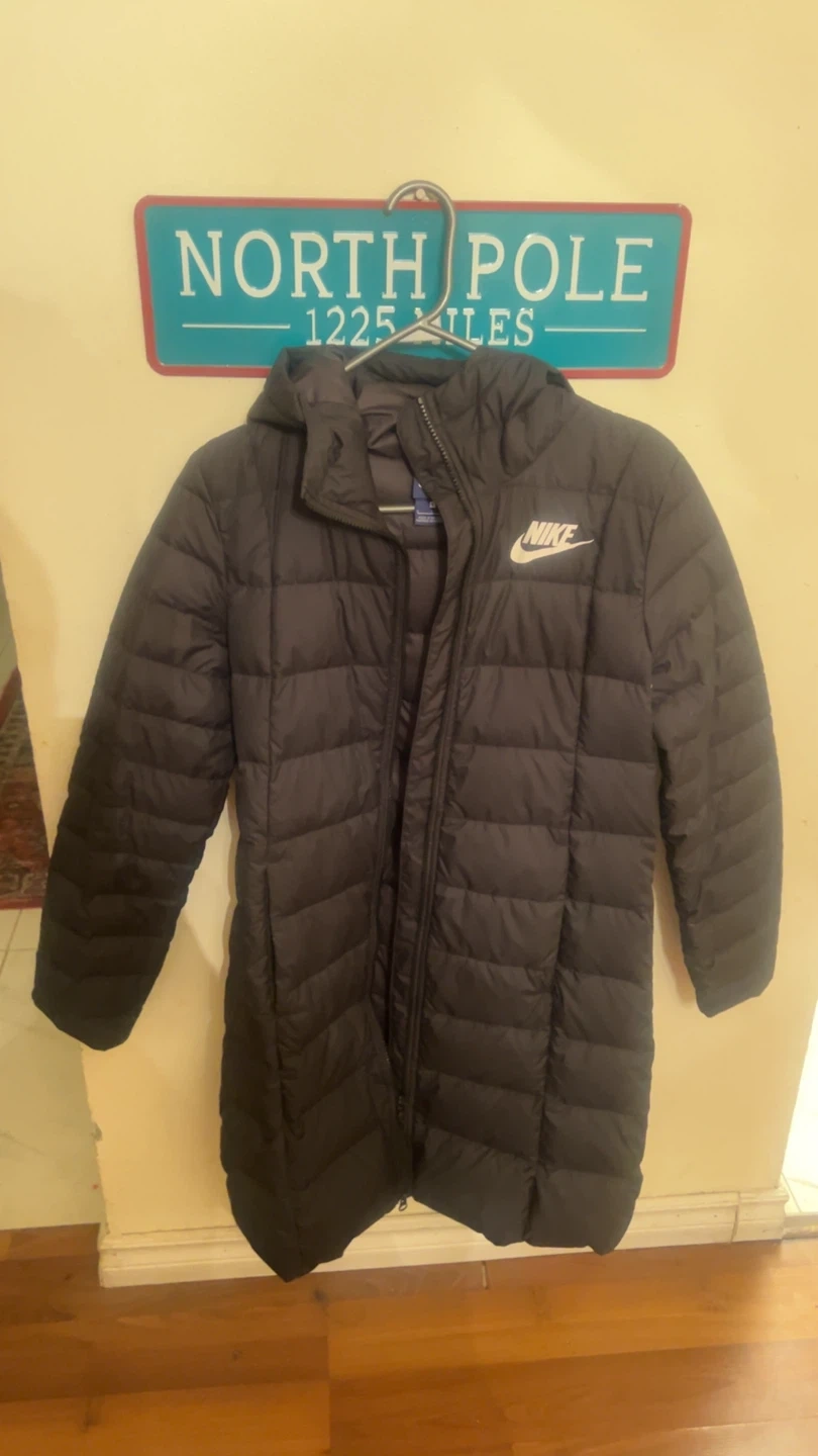 A stylish Nike black puffer coat, perfect for staying warm during those chilly days! It's in great condition and ready for a new home