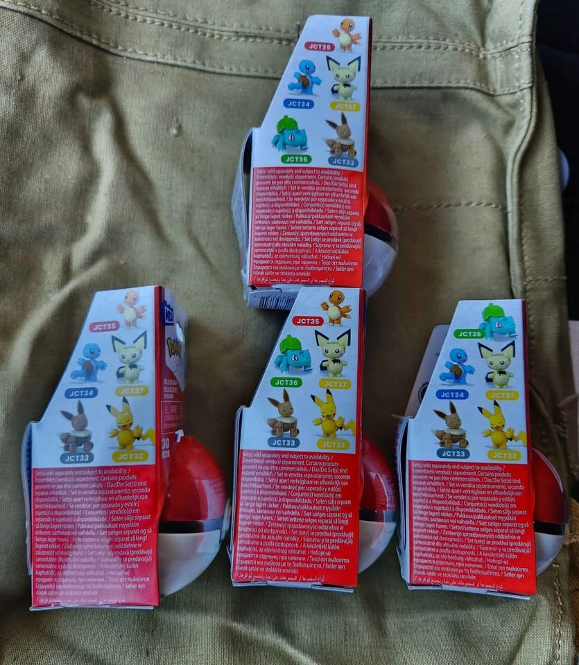 I'm selling these Mega Pokémon building sets. Each set comes in its own Poké Ball. They are recommended for ages 6+. Available characters include Pikachu, Bulbasaur, Squirtle, and Charmander. Great for any Pokémon fan!