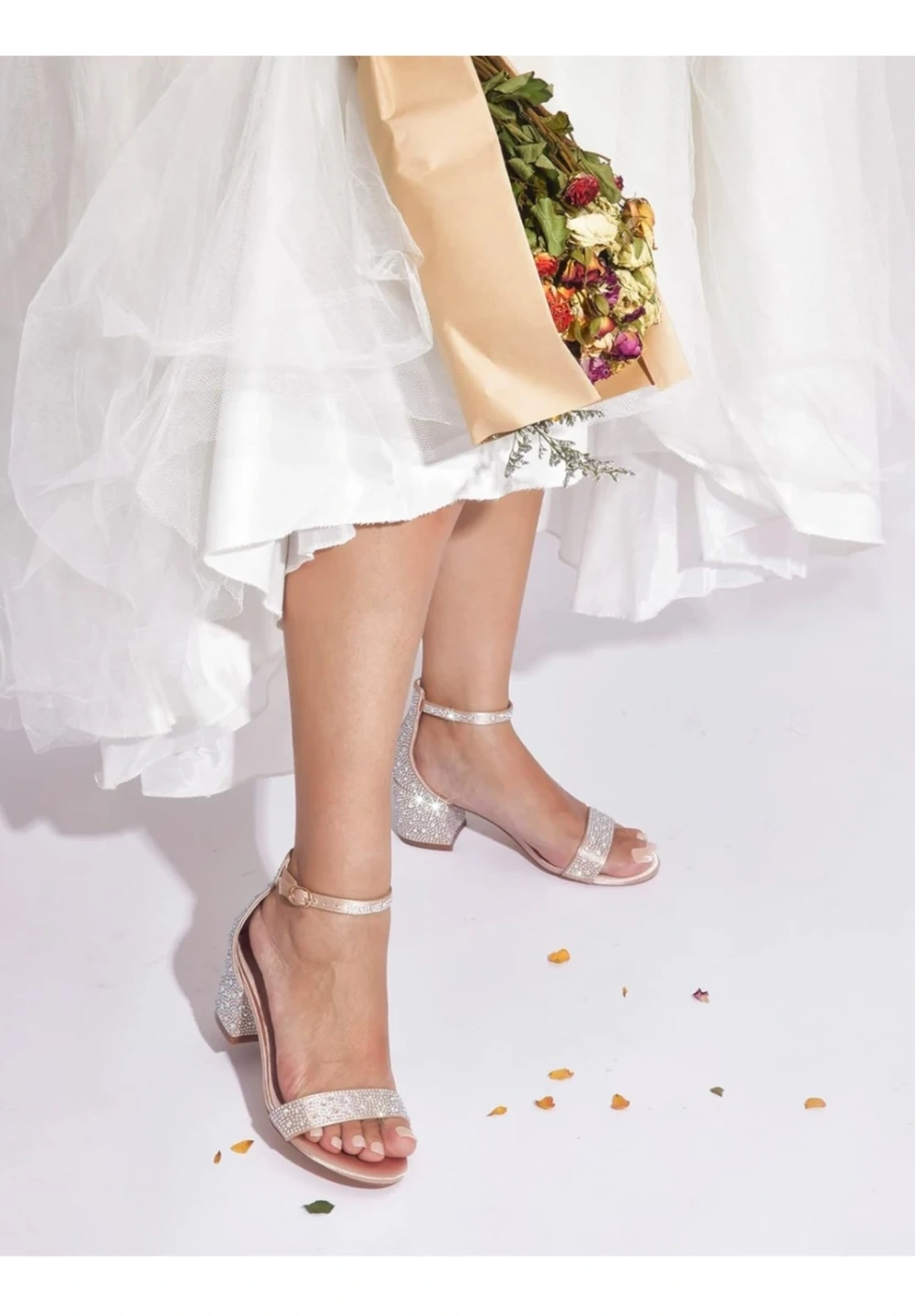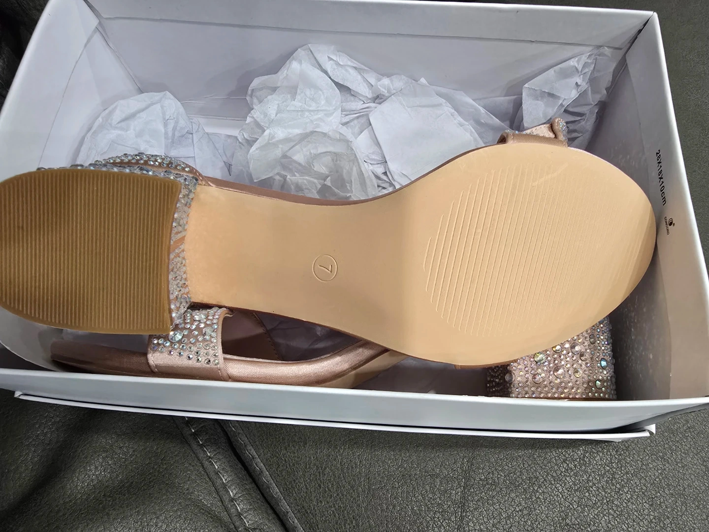 These blush-coloured heels from Qupid are a size 7 and feature sparkly rhinestones! They have a chunky heel that's 2.36 inches high. They come in the original box too