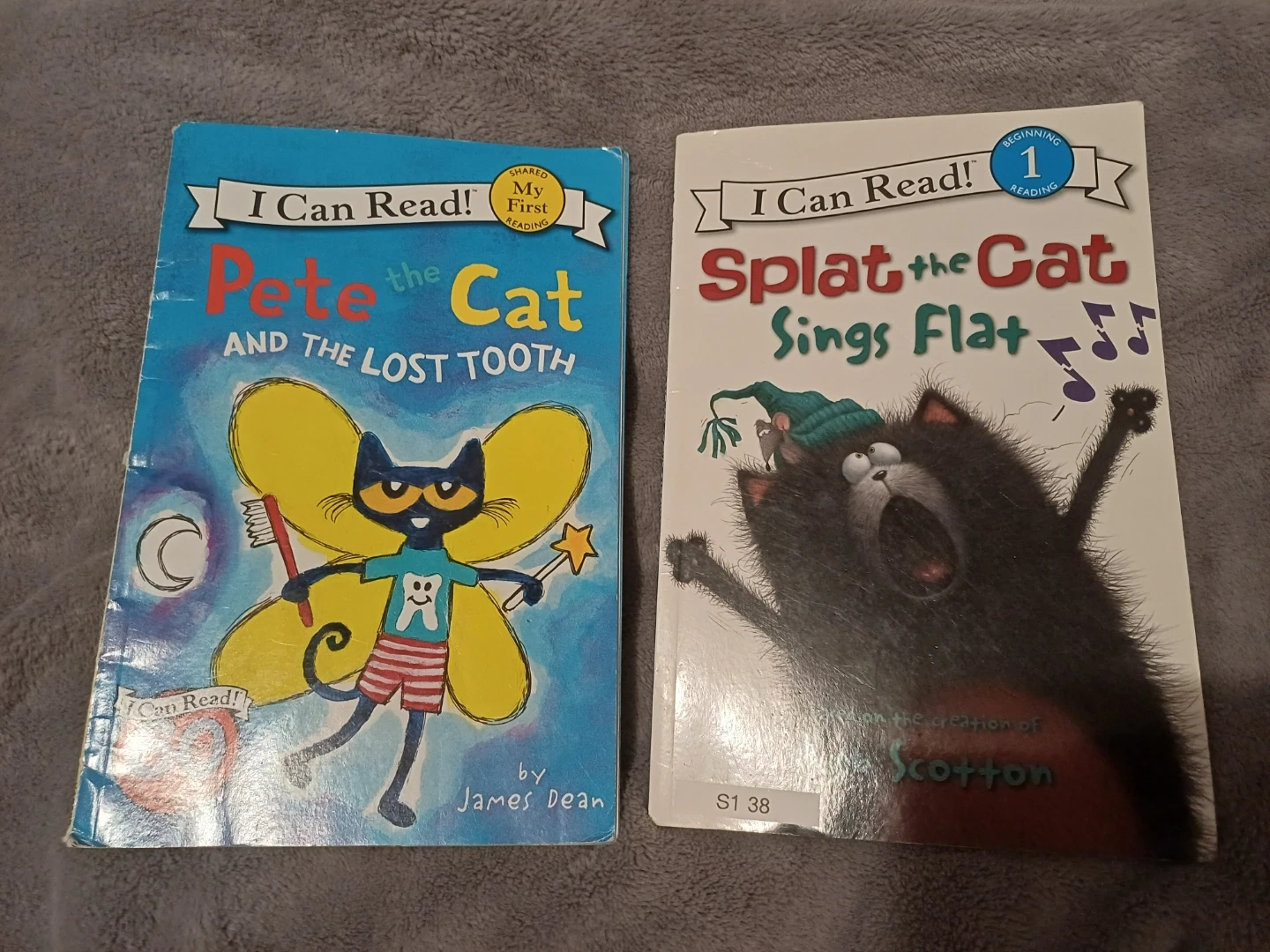 Free: Two 'I Can Read!' books featuring Pete the Cat and Splat the Cat. Great for beginner readers!