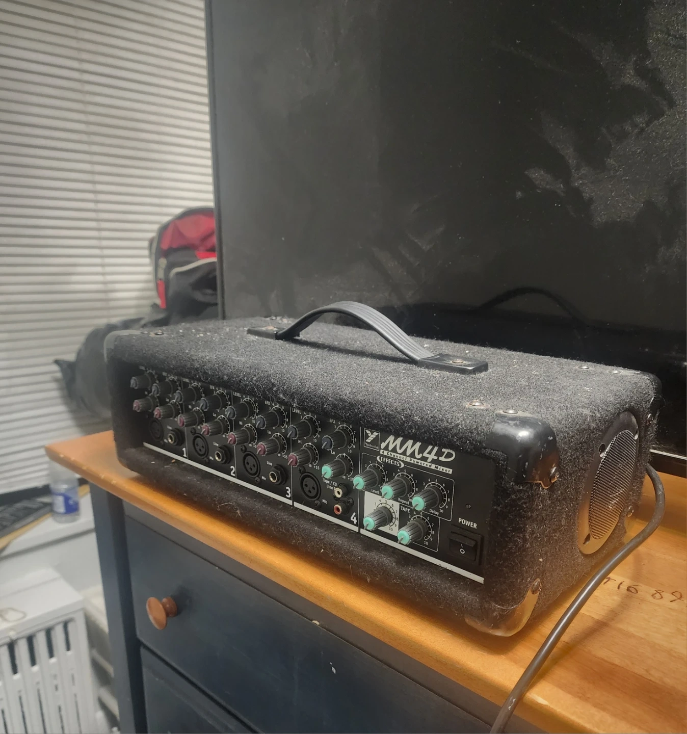 Selling a used Yorkville M44D 4-Channel Powered Mixer. It has some wear and tear, but it's still functional. Perfect for small gigs or practice sessions!