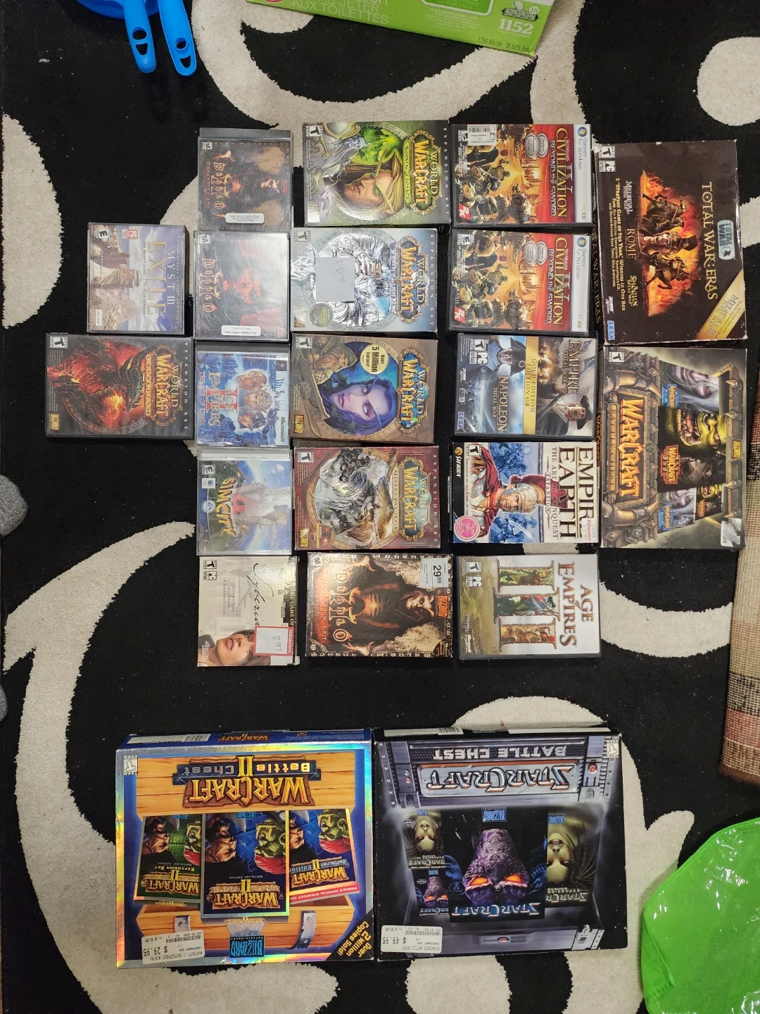 Selling a collection of PC games including Warcraft, Diablo, SimCity, Age of Empires, and more! Great for any retro gaming enthusiast looking to expand their collection